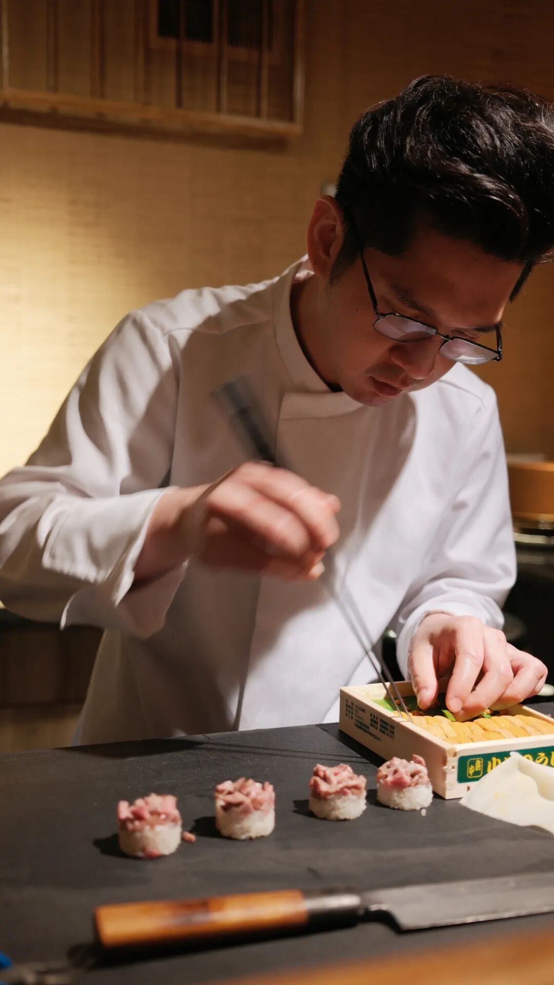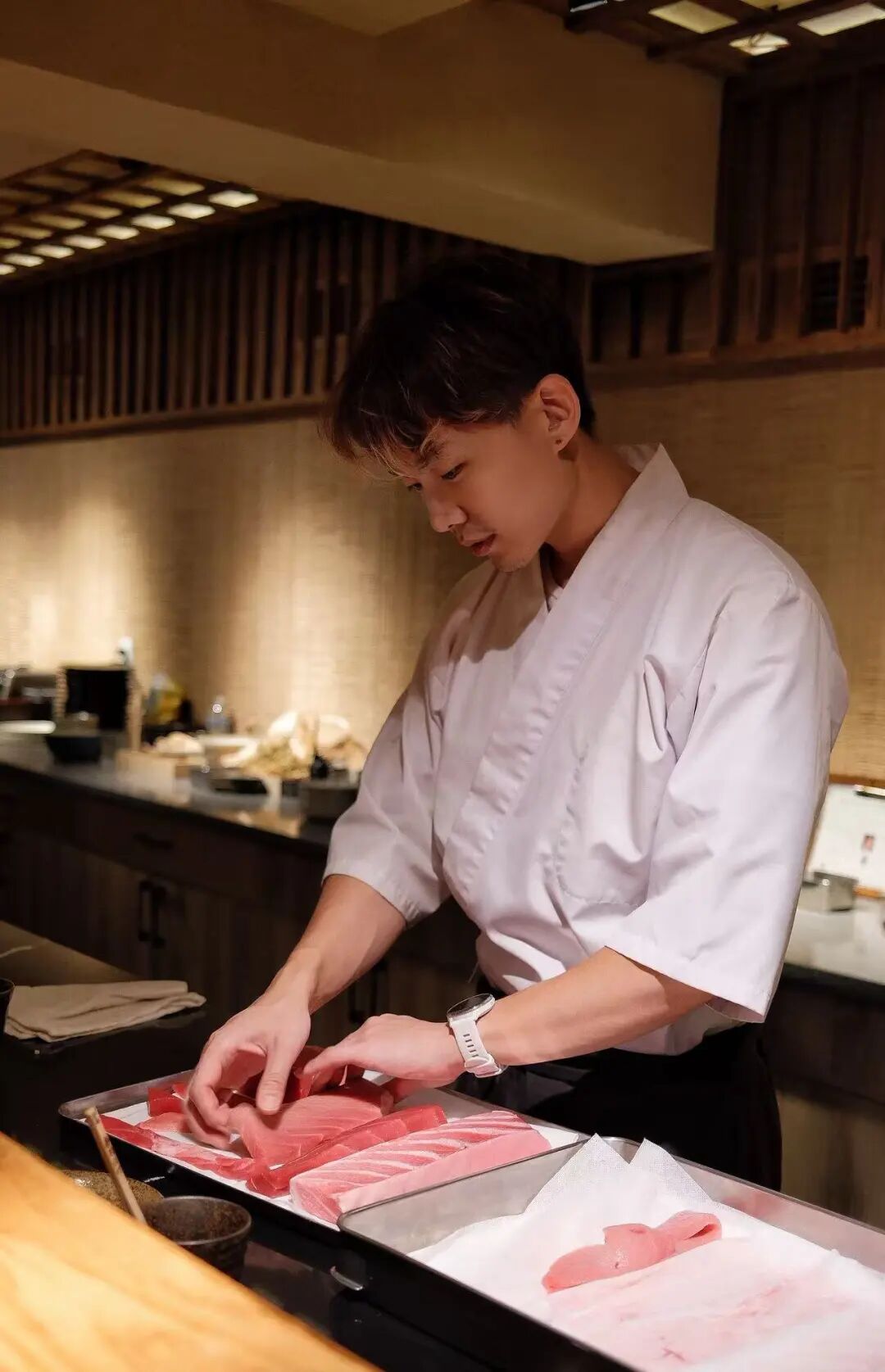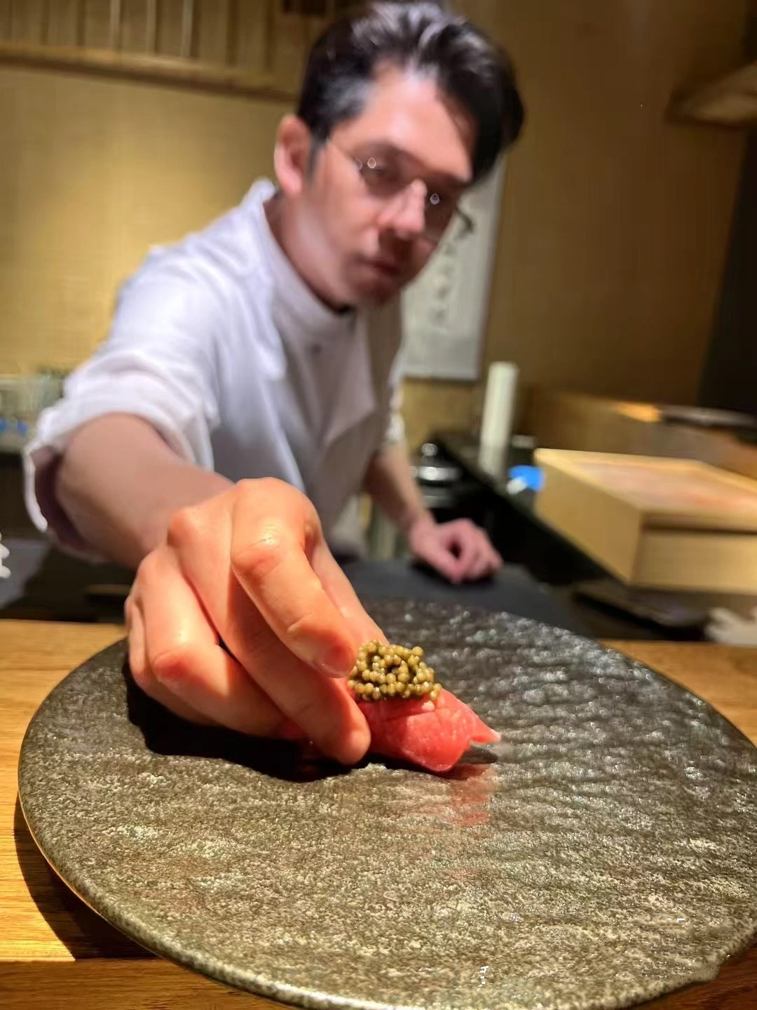 出身餐馆世家,从小在后厨长大的Omakase主厨陈正茂,举手投足间尽显温润儒雅。他对美食与生俱来的敏锐洞察和独到品味,让他在餐饮道路上不断突破自我。