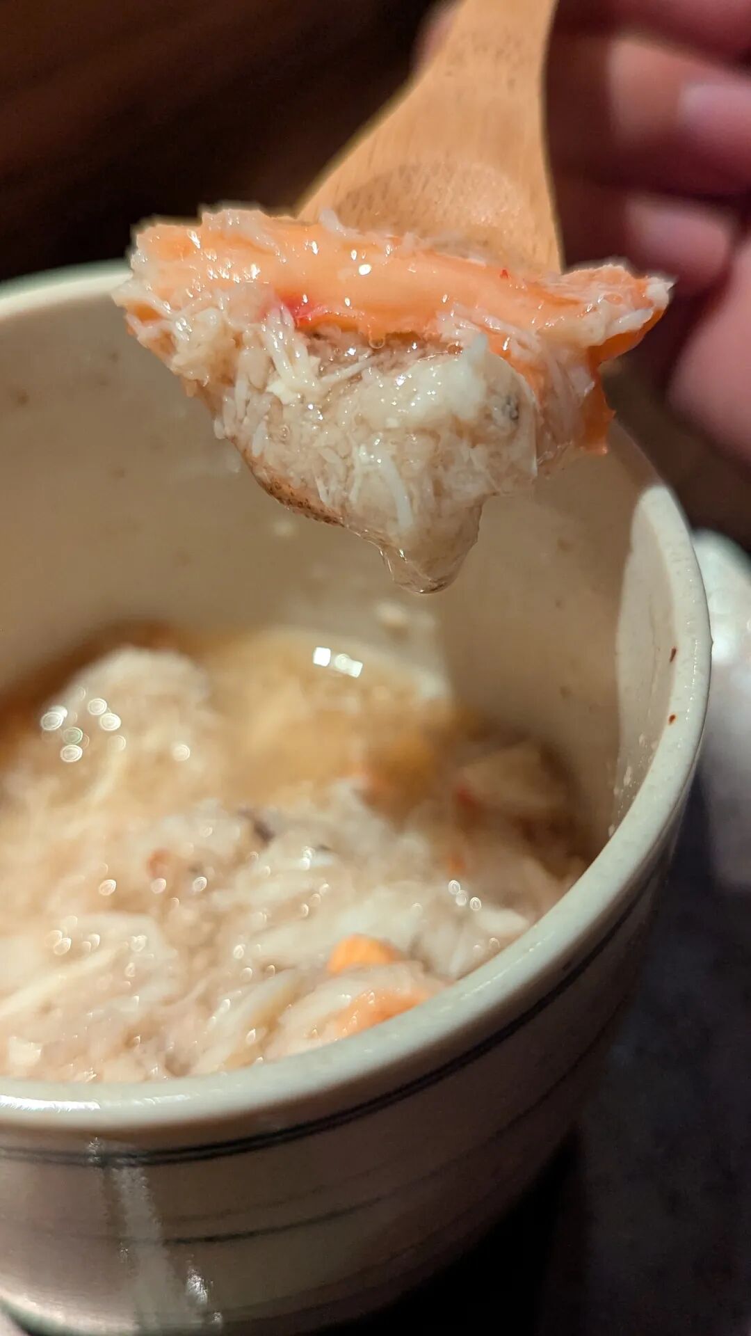 趁着温热,舀起一大勺,满满的蟹肉带着莲藕碎的温润,在齿间荡漾的一刻,鲜道极致也不过如此。