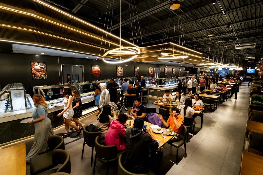 左边是面积两万尺的超大就餐区,可以容纳七八百人同时就餐,绝不用担心吃饭排队,妥妥坐下,狂吃到回本就可以了。