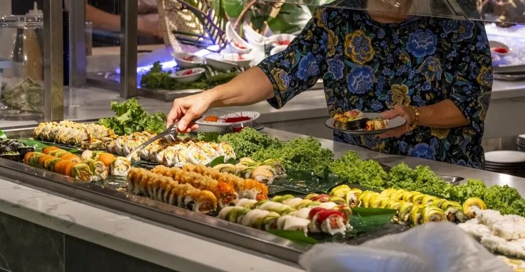 摆满各种寿司和刺身的日料区就是你的主场,平日里心疼钱包舍不得吃的各种刺身,在这里管够,不论是食材还是口味,都完全不输日料店 !