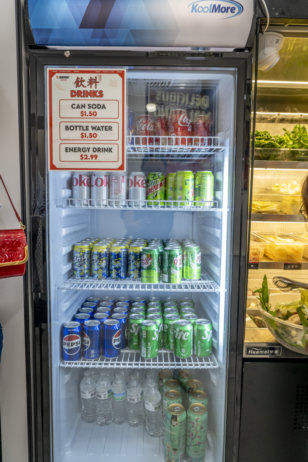 第二步:挑选食材。看看这满满的一冰柜,足足有一面墙这么大,可以挑选的品种超过50+。