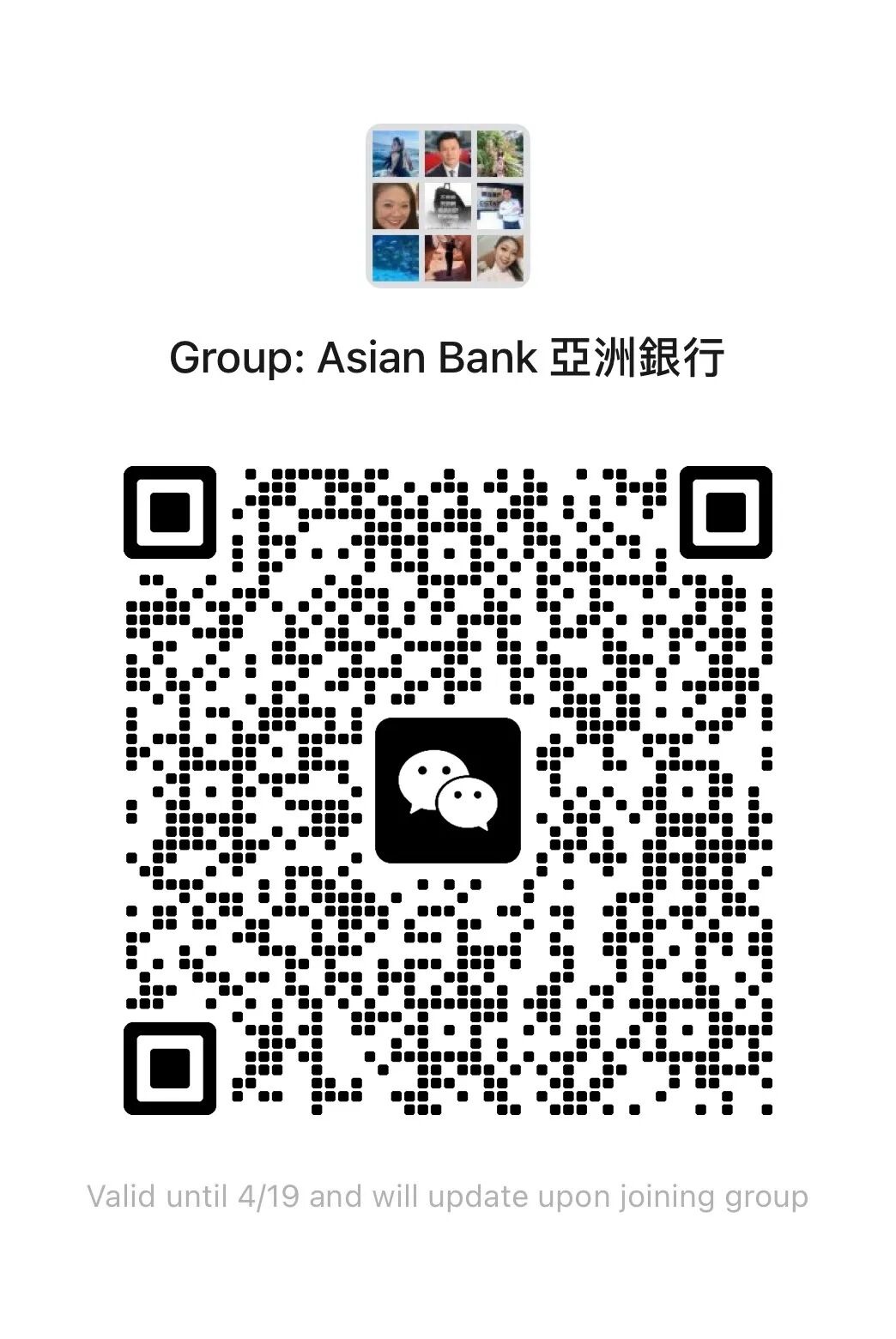 各位家人还可以长摁下面的二维码加入亚洲银行微信服务群,有事儿直接和客户经理交流,方便!