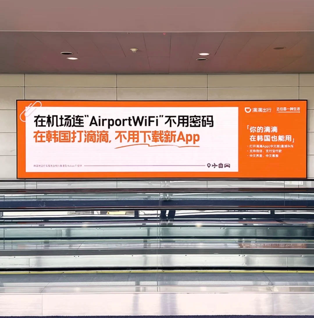 在韩国机场逛一圈,很容易被各类广告淹没,有韩流明星代言的美妆品,有拍得像电影的旅游宣传片,但在首尔仁川机场滴滴的广告却格外“不一样”,你会看到一些熟悉而又亲切的中文文案。