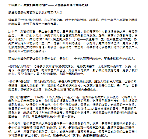 “赛嘉的十年,是我们家从 2 个人变成 5 个人的十年。” 杜女士在十周年家书里写道。2015 年,她与先生入住一室一厅,后来迎来小天使,父母搬来同住,赛嘉的户型也同步 “成长”:从温馨一室到宽敞两室,再到如今承载五口之乐的三室一厅。儿童活动区记录着孩子的蹒跚学步,休闲廊留下过家庭聚会的笑声。