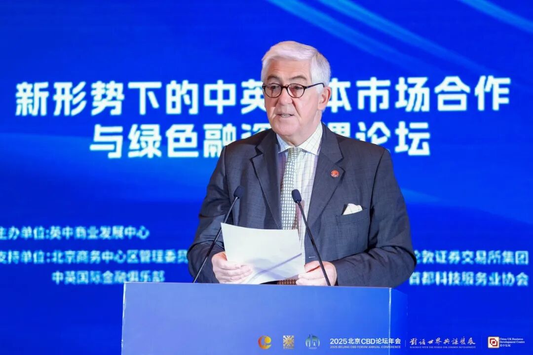 英中商业发展中心主席约翰·麦克莱恩在开幕致辞中指出,在全球经济重塑与绿色转型加速的背景下,中英双方面临前所未有的合作机遇。他强调,伦敦作为国际金融中心,凭借稳定的监管框架、多元化资本平台和在绿色金融领域的领先优势,持续为中国企业“走出去”提供坚实支撑。