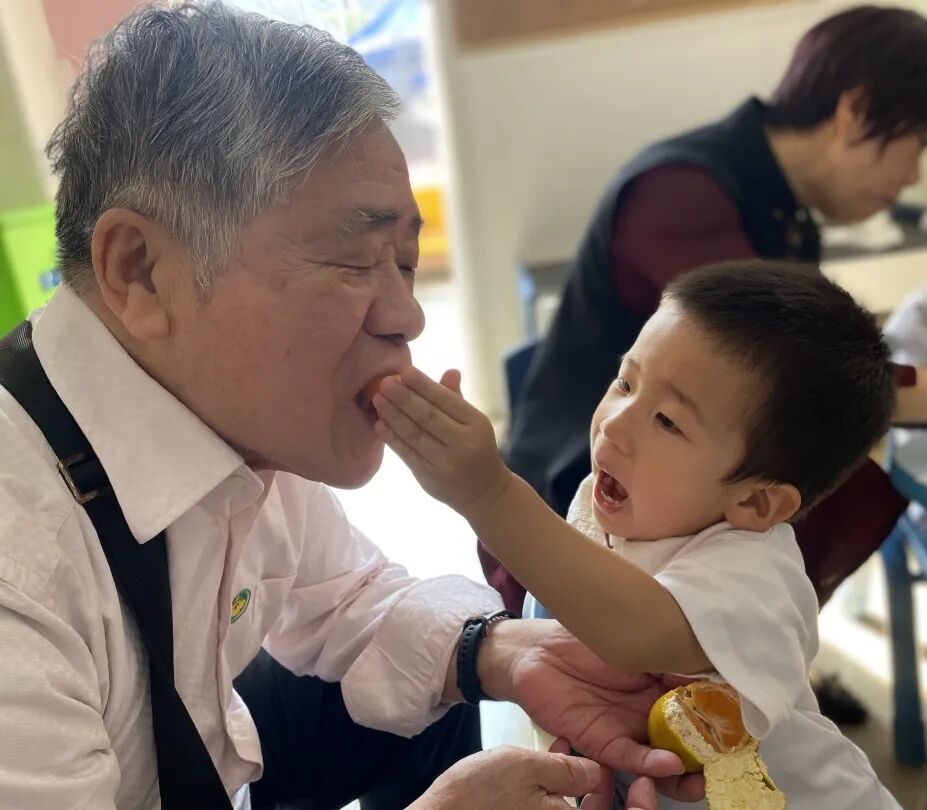 “小时候,爷爷奶奶给我剥桔子。