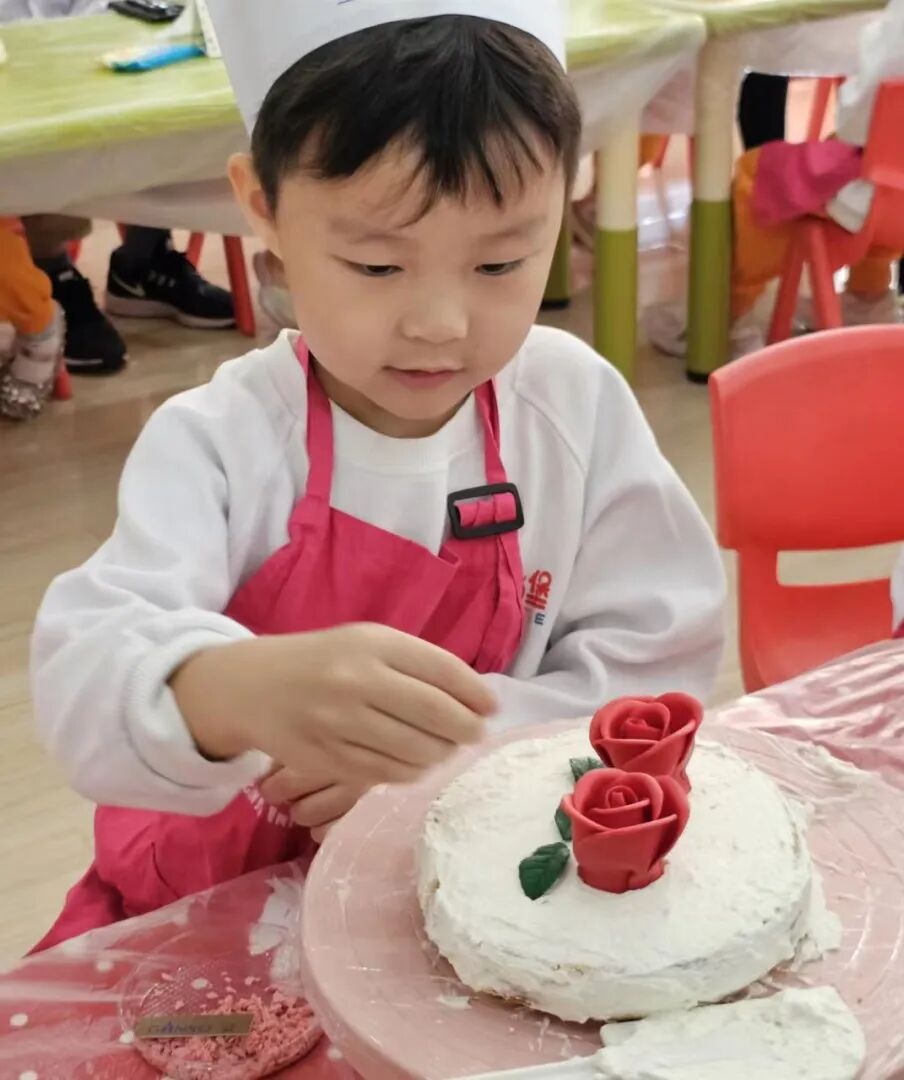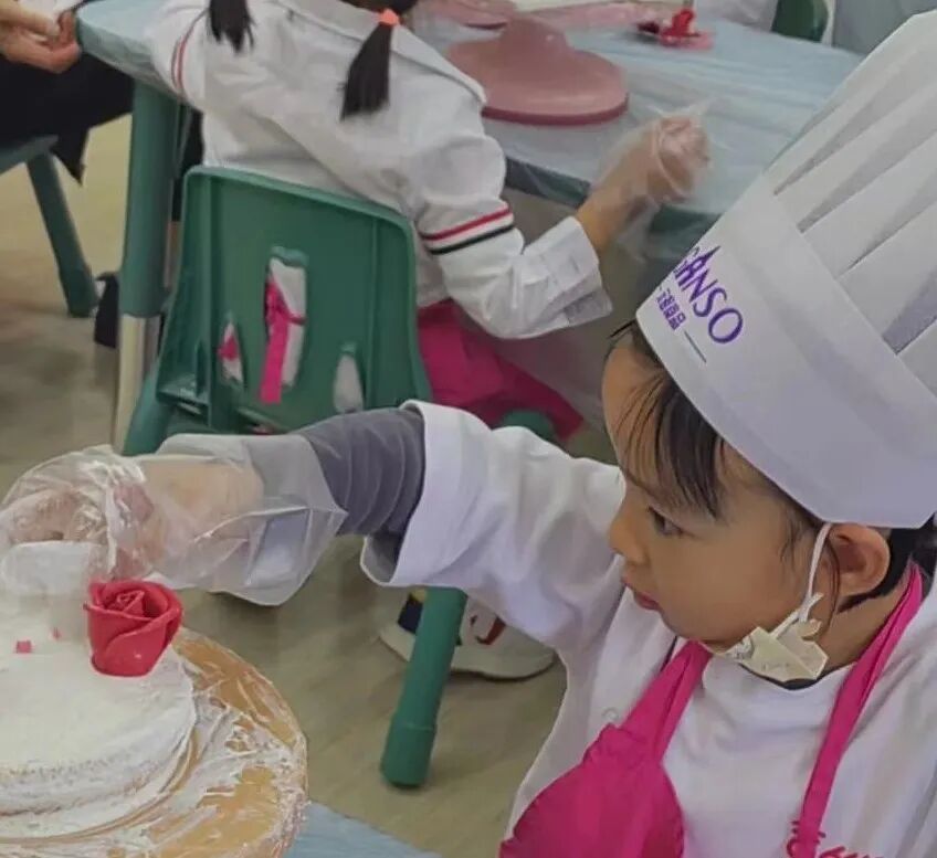 宝贝们亲手制作yummy cakes,抹抹奶油、点缀装饰,对爷爷奶奶的爱融在甜蜜的蛋糕里。