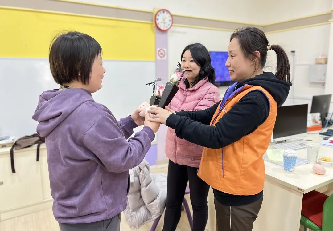 孩子们开动小脑筋,发挥奇妙的创造力,制作出了专属于“她”的礼物。这份礼物不止可以送给妈妈、外婆、奶奶,同样可以送给回家路上遇见的某位打扫路面的奶奶,商场吃饭时为我们送上茶水的服务员小姐姐,也可以送给小区里天天与我们见面的物业阿姨......在温馨的节日氛围里,为“她”带来一个小小的惊喜,为“她”献上一份最真挚的爱。