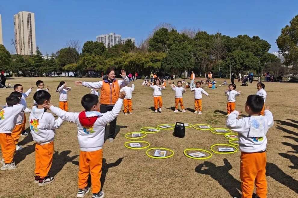 在绿意盎然的草坪上,我们进行了一场充满乐趣的“抢圈圈”游戏。外教老师将彩色圆圈散落草地,孩子们随着音乐指令奔跑、欢笑,用身体记忆。游戏,也可以如此鲜活!