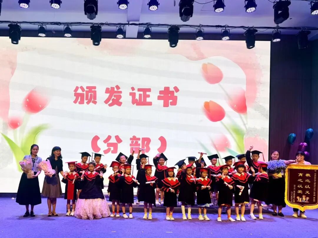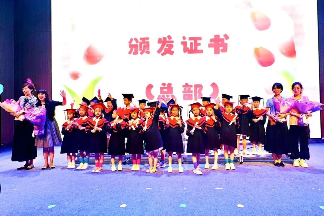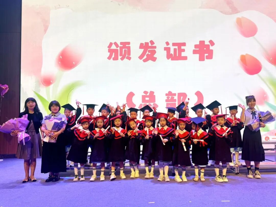 最庄重的时刻到来!谢园长逐一为总部和宝华分部的孩子们颁发毕业证书,小小的证书承载着大大的成长,孩子们双手接过,有的骄傲展示,有的害羞低头,但每一张笑脸都写满幸福。