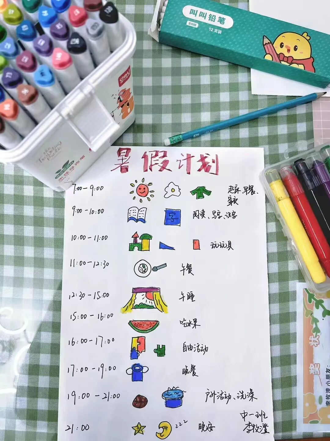 孩子们自制假期时间安排表,为即将到来的新阶段做好准备,良好的作息习惯是孩子们健康成长的基础,作为准大班幼儿,需要养成有规律的作息生活。