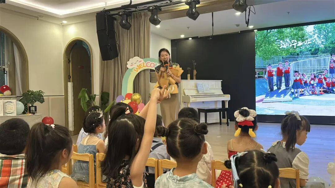 每一年的毕业典礼总是伴随着欢笑开始,又以离别的伤感走向尾声。典礼上,老师笑着回忆日常,却又不禁哽咽,一句“要做永远的小太阳”“最后点一次名”,把三年师幼情凝成最暖的期许。入门的电视屏幕上,教师运用AI技术精心制作的幼儿成长变化视频徐徐展开,每一帧画面都记录着孩子们的点滴进步。