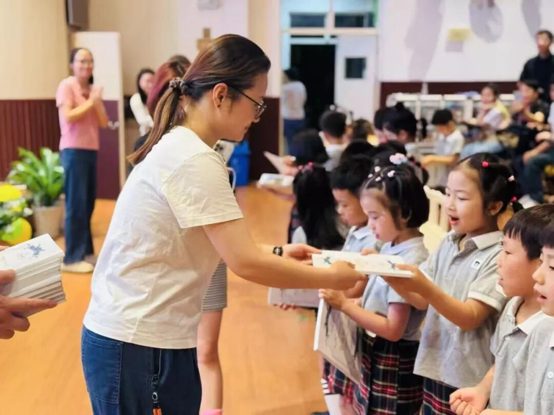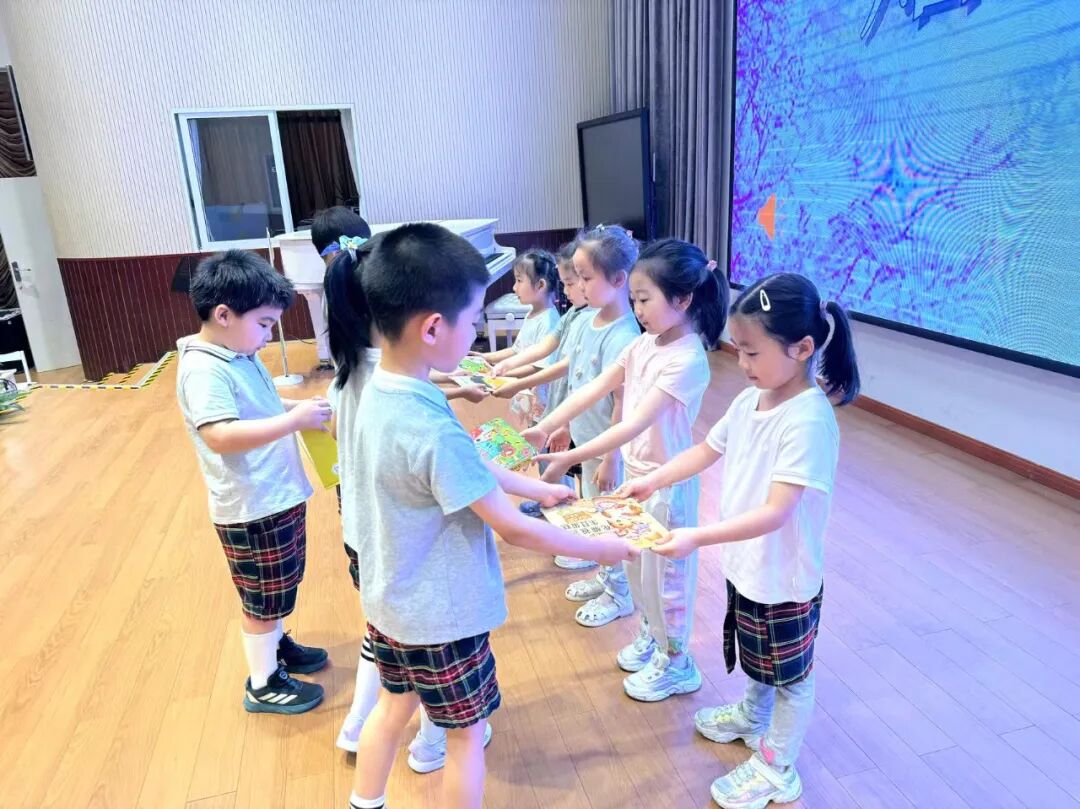 大班哥哥姐姐将珍藏的绘本递给中小班弟弟妹妹,稚嫩的小手传递的不只是书籍,更是知识的火种与成长的祝福。愿这份温暖延续,让书香浸润每个孩子的童年!