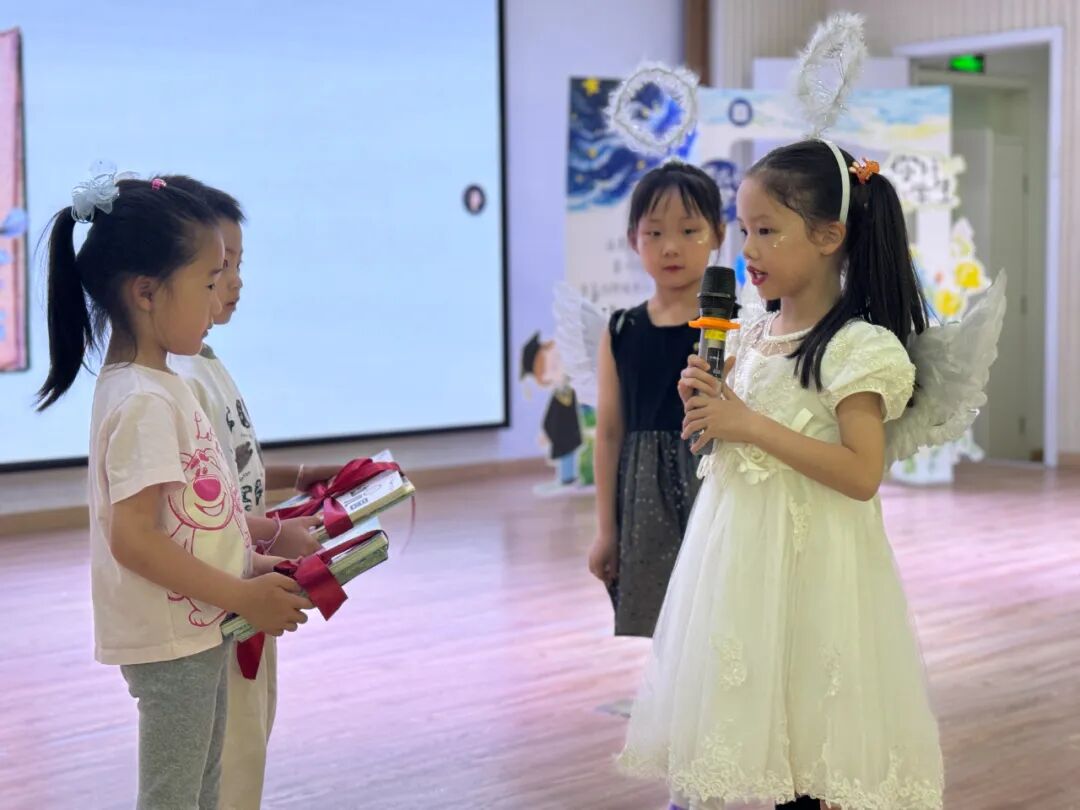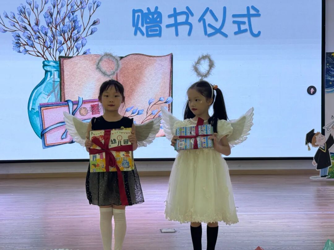 嗨!亲爱的中班弟弟妹妹,我们是即将成为小学生的大班哥哥姐姐。我们决定把心爱的图书留在班级里,和你们一起分享。书里有温暖的故事,有刺激的冒险,希望你们爱上阅读,像我们一样在小小的书中,探索大大的世界。
