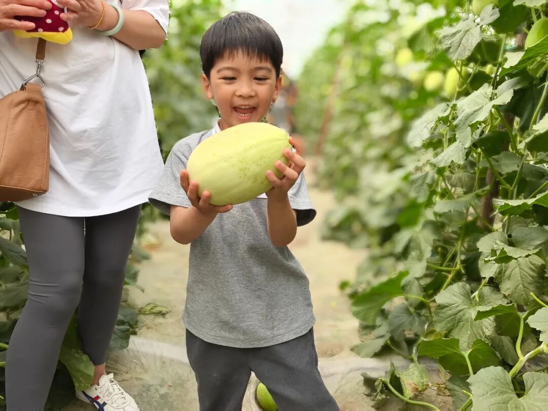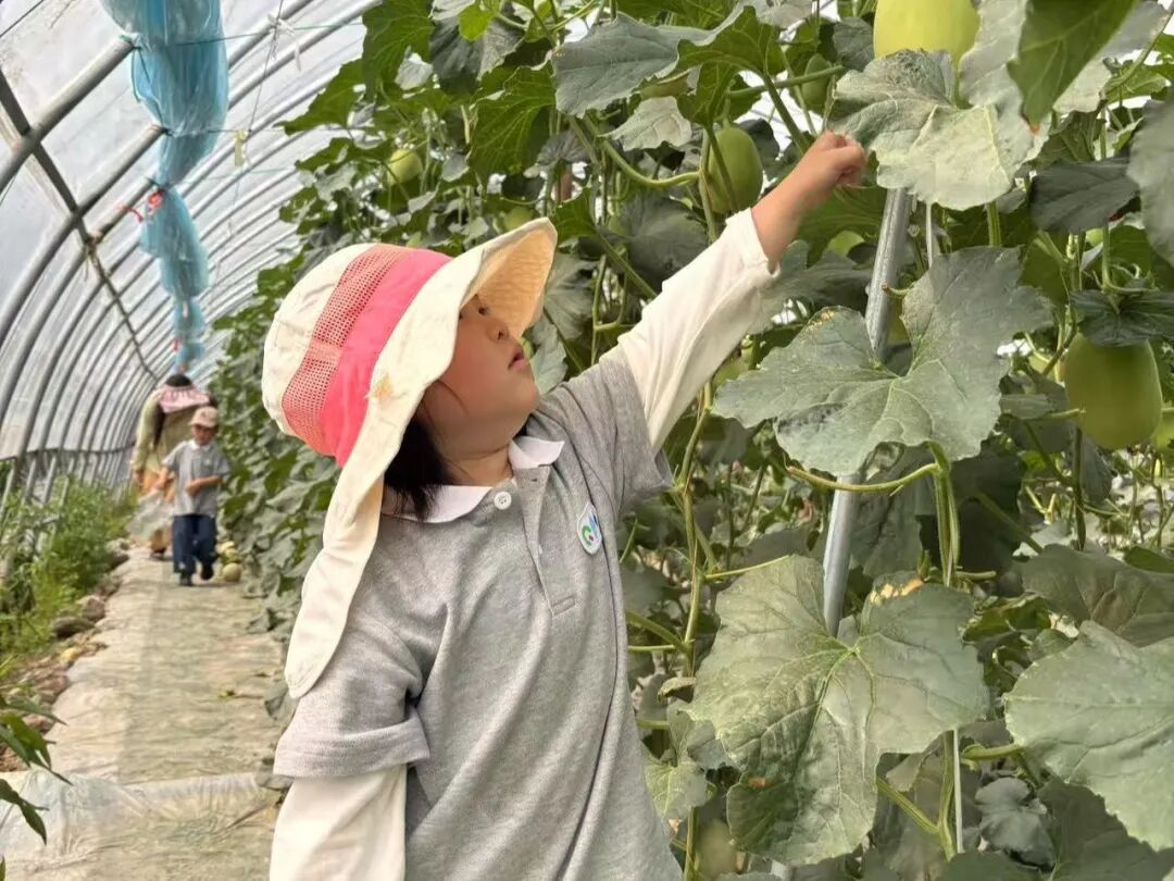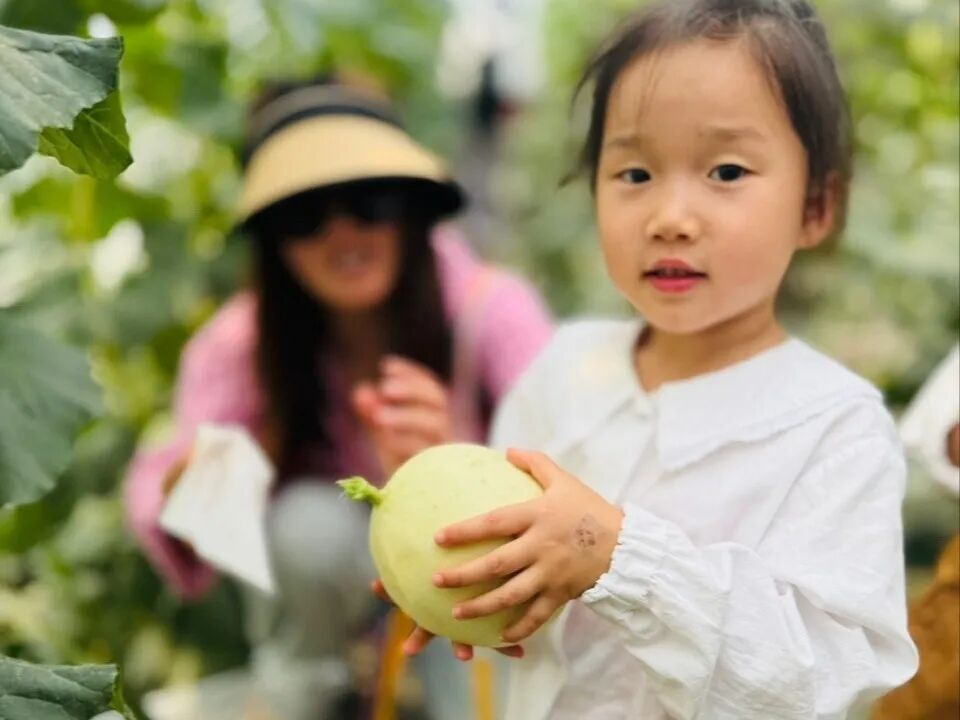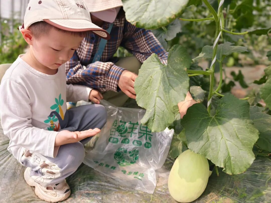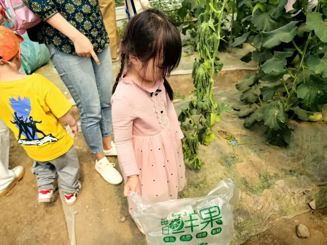 来到采摘区,孩子们开启了欢乐的采摘之旅。他们小心翼翼地用小手指捏住翠绿的蔬菜,在爸爸妈妈的帮助下,“啪嗒”一声掰开;在室内棚里采摘水果黄瓜,每摘到一根,就开心地高高举起,向大家炫耀。不一会儿,篮子里就堆满了新鲜的收获。穿梭在田间,孩子们认识了各种蔬菜,体验到了采收的辛苦,也收获了满满的成就感,迎来了一场蔬菜大丰收!