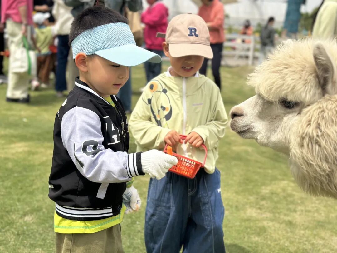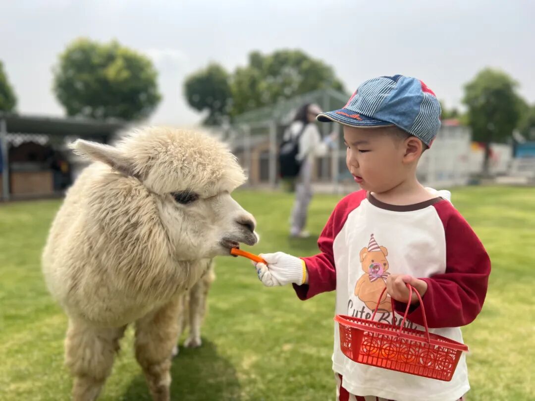 萌宠乐园里,小羊驼、小梅花鹿、兔子等可爱的小动物早已翘首以盼。孩子们一踏入这里,就被小动物们毛茸茸的耳朵深深吸引。领取新鲜蔬菜后,他们小心翼翼地靠近,轻轻投喂。看着小动物们吃得津津有味,孩子们的脸上绽放出灿烂的笑容。在与小动物的亲密接触中,孩子们学会了关爱与照顾,爱心与责任感在心中悄然萌芽,同时也更加亲近大自然,感受生命的美好与奇妙。
