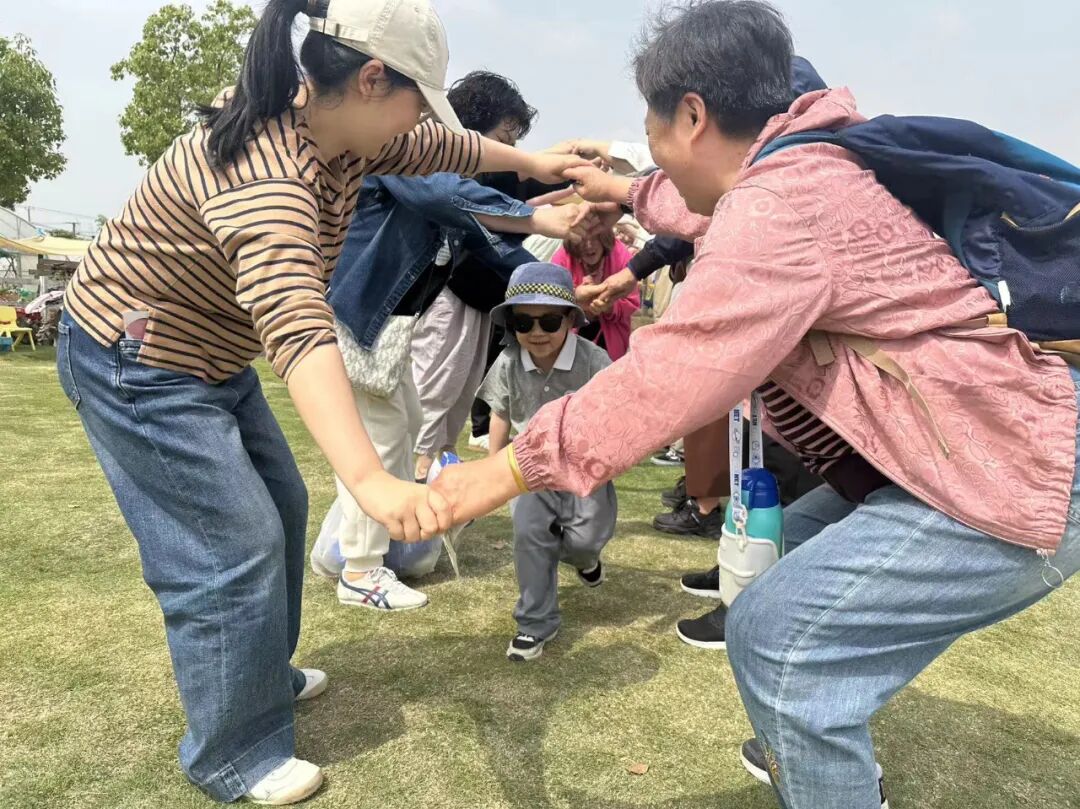 春游的乐趣,不仅在于郊外的美景,更在于和爸爸妈妈一起参与的趣味亲子游戏。草坪上,亲子们的身影交织,孩子们银铃般清脆的笑声回荡在空中。“抓泡泡”“许多小鱼游来了”“接云朵”等游戏轮番上阵,绿茵场上,大家你追我赶,欢快的笑声此起彼伏。这些温馨的亲子互动画面,为此次春游拉开了欢乐的序幕。