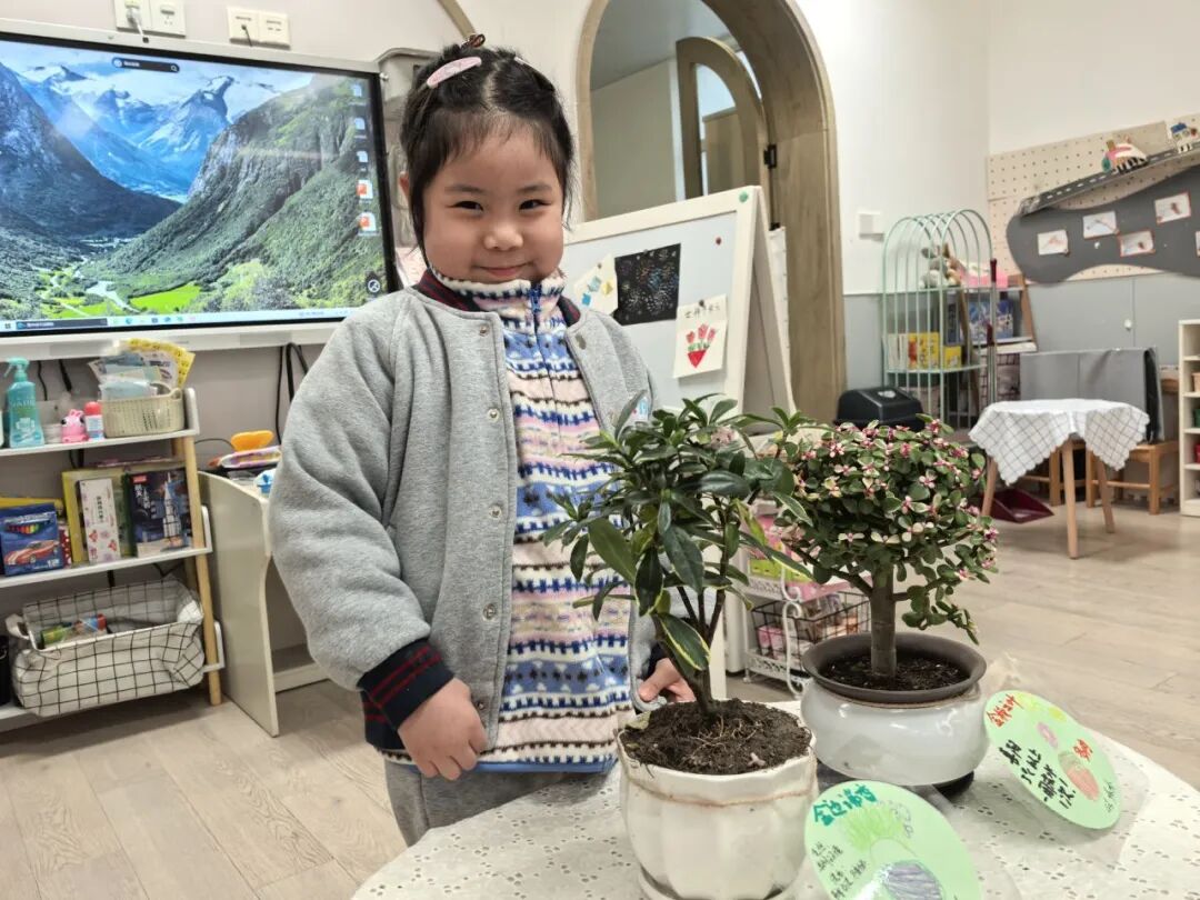 在老师的耐心协助下,萌宝们一起动手布置班级植物角。有的小心翼翼地摆放绿植,有的认真地给植物浇水,小小的身影在植物角间穿梭。布置完成后,萌宝们一起和植物角合影,纯真的笑容如同春日暖阳,照亮了整个教室。