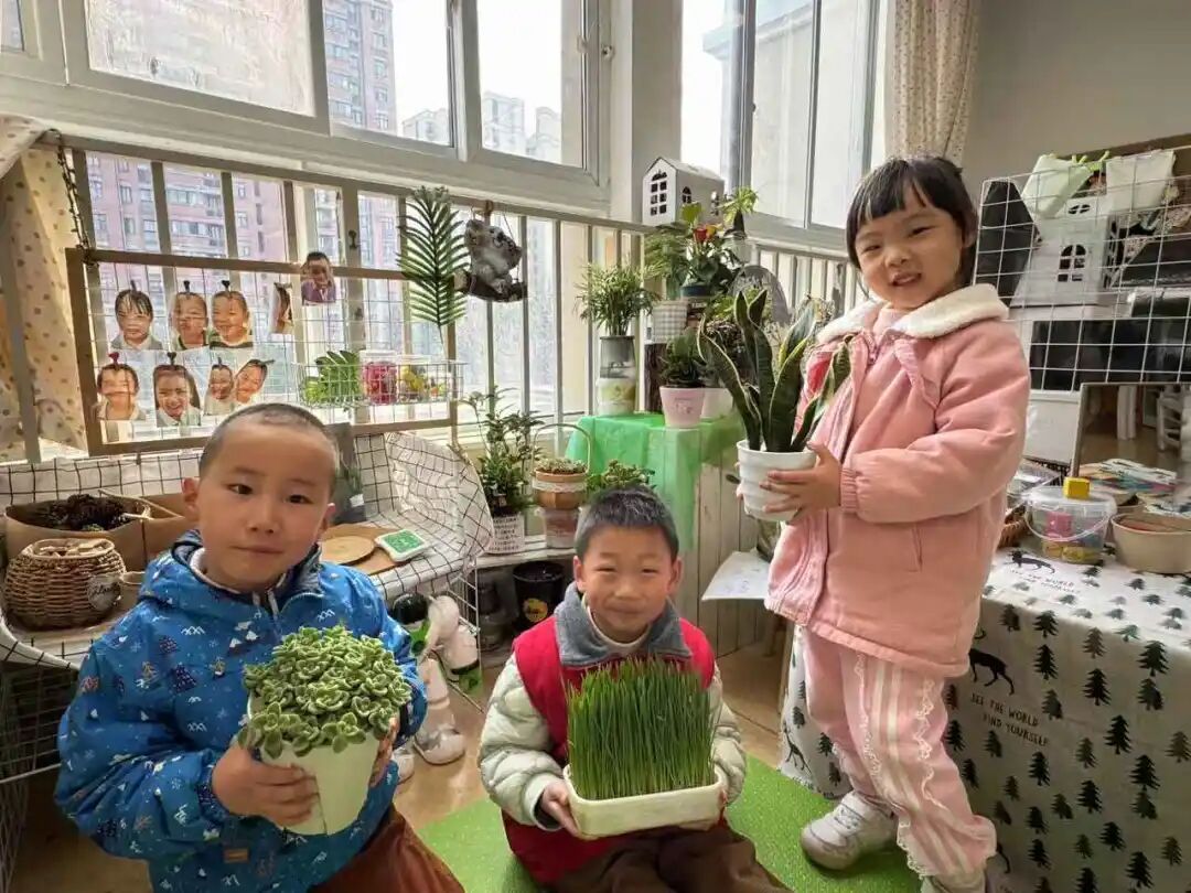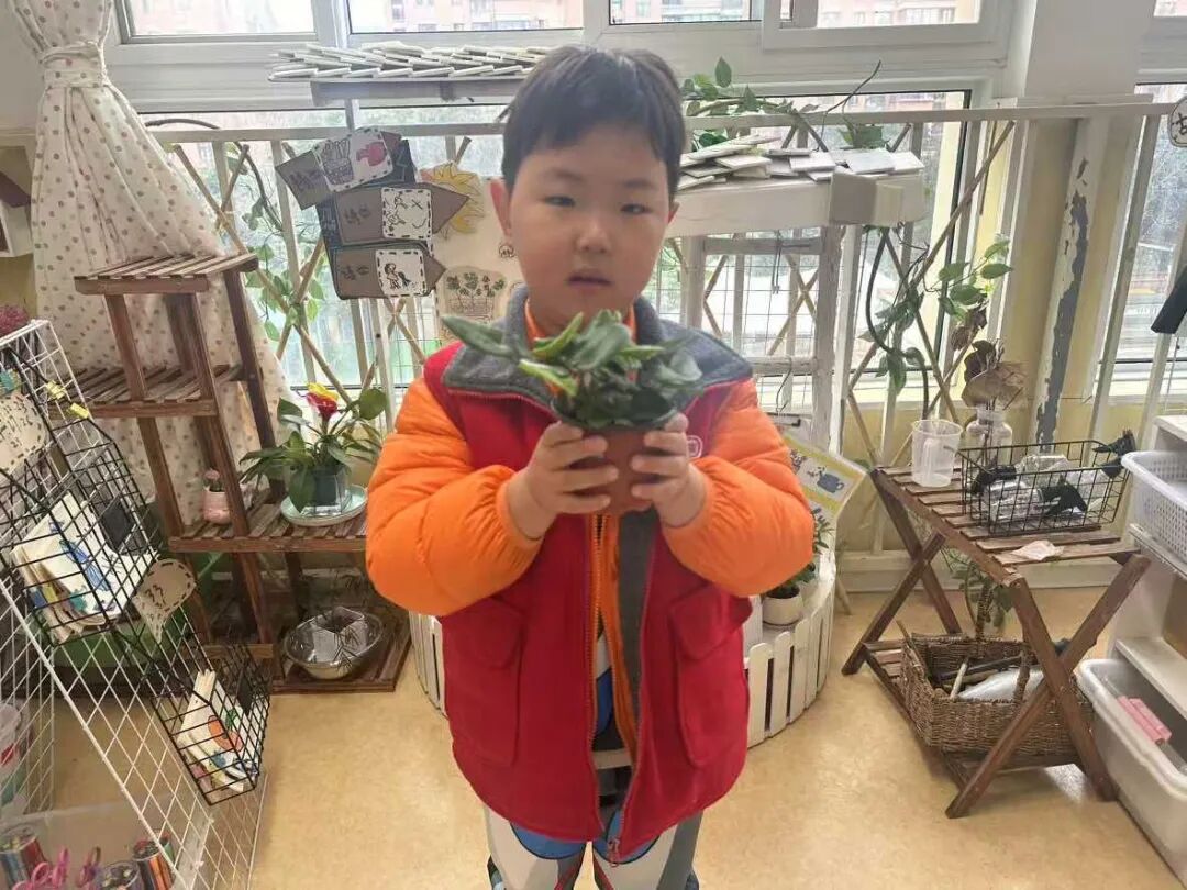 设计班级的植物角时,他们考虑的更加周全,从布局到装饰,每一个细节都反复商讨。布置植物角时,他们能分工明确,配合默契,将植物角装点得生机盎然。