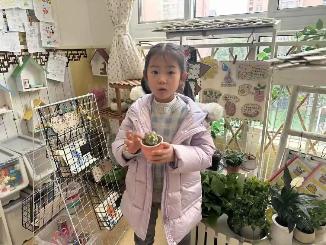 中班的小朋友们则展现出了满满的创意与协作精神,他们自信地介绍着植物的名称、特点和养护方法。