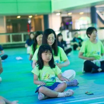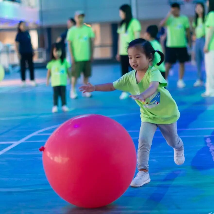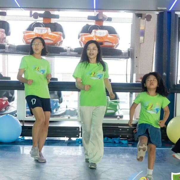 As the last glow of dawn merged into the boundless blue, the sky grew clear and bright. Everyone moved to the sports field with full energy, where children and adults stretched together, starting a mindfulness yoga journey.