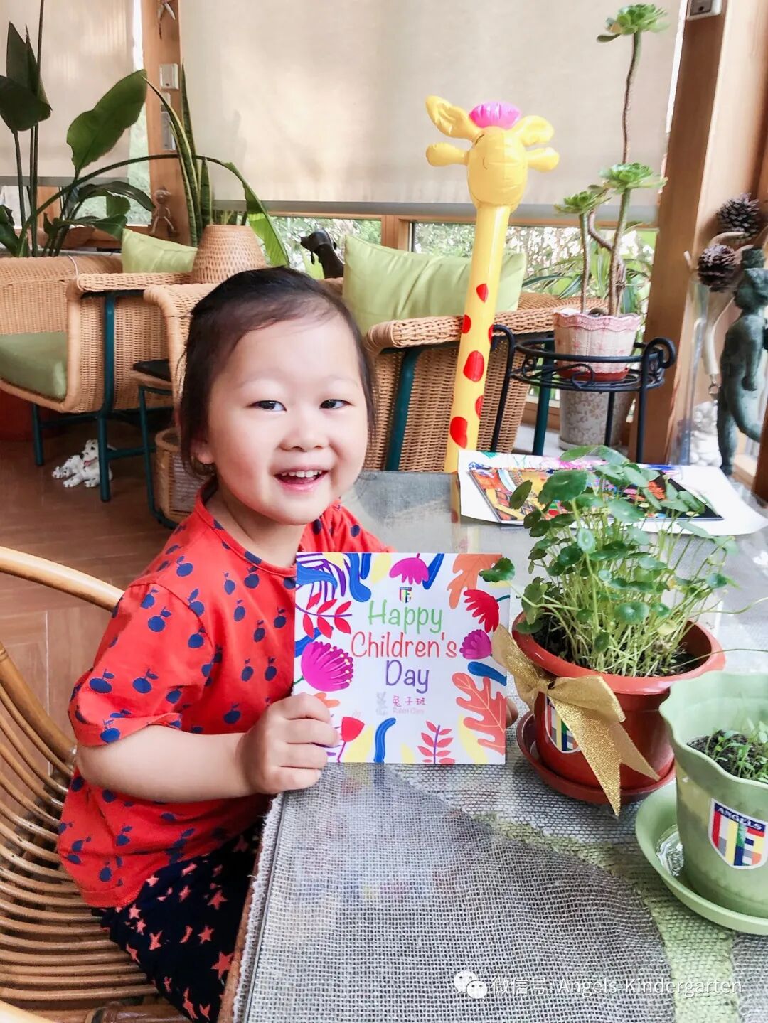 An unremarkable small seed is planted in the soil of Mother Earth. From that moment, the little Prince cares for his rose - talking to it every morning after waking up and every night before going to bed. He waters it, loosens the soil, and bathes it in the sun. How we wishes it to sprouts up soon. At last, the tender buds sprout from the soil, and although it is small and fragile, it is still the special "rose". Today, we’ll pass this on to our cute little Angels as a gift - with the greeting card handwritten by our dear Principal Yoko, we hope that under the care of the little Angel, it will gradually grow up.