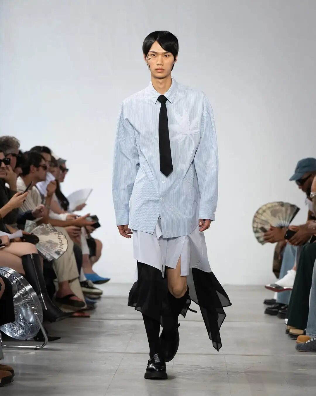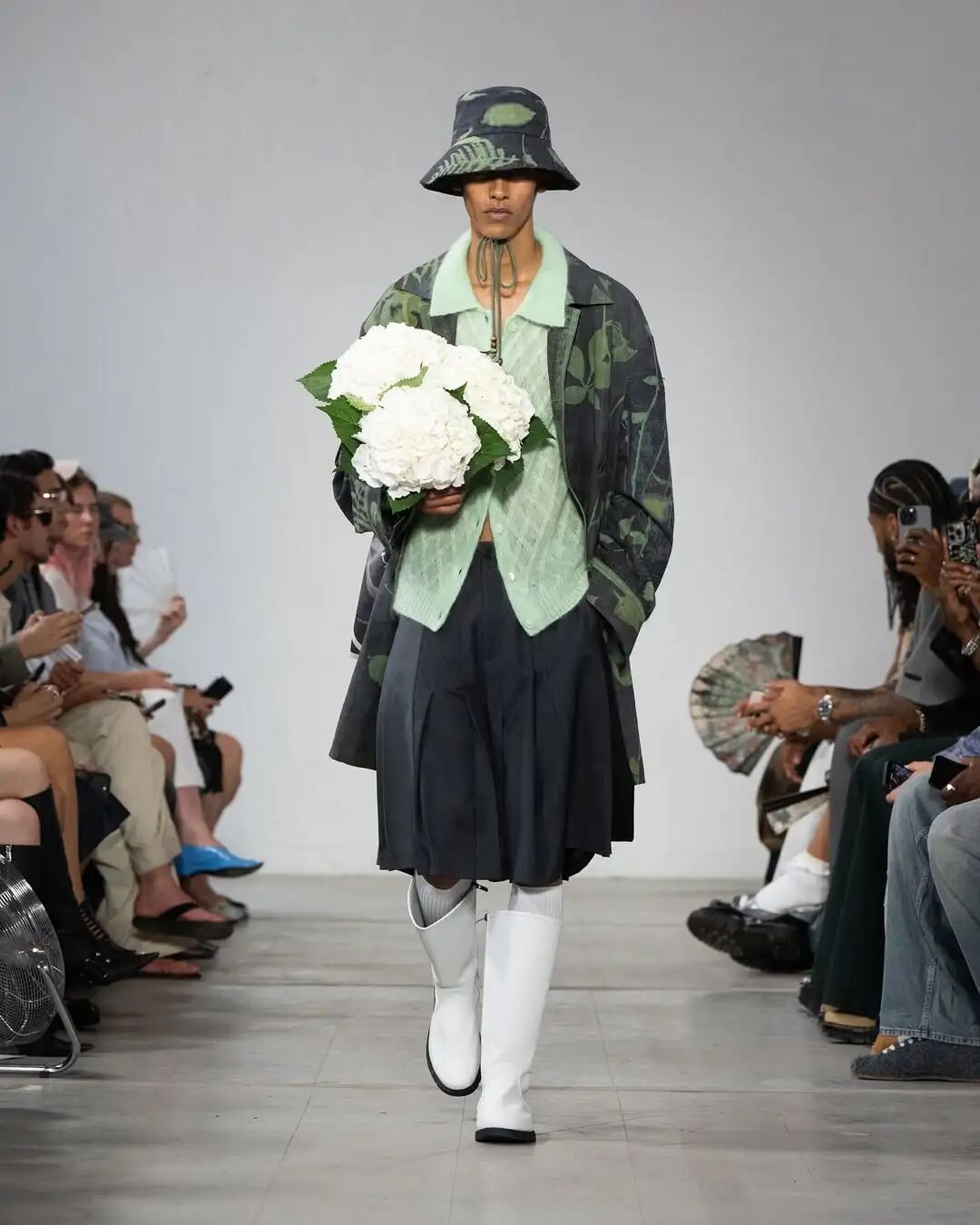 以 Feng Chen Wang 2024 秋冬发布为例,该系列从其家乡福建 “茶文化” 中汲取灵感,时装配色反映了制茶过程中的色彩变化,鞋履部分则是与匡威联名推出的 Chuck 70 概念鞋款,其秀场款打造独特可拆卸的 “茶壶鞋底”,与大秀主题巧妙呼应,无疑是一种保留自身风格基础上为品牌赋予新突破的典范。