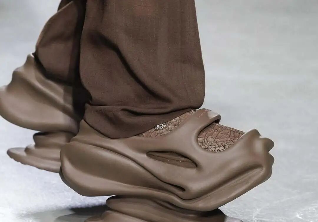 “摩登未来是 Feng Chen Wang 的品牌基因,这决定了我们需要不断去吸纳前沿的技术信息来赋予设计新生命,” 她如是解释。比如已经与品牌合作超过四季的 UGG,今年发布的 2025 秋冬系列中,双方的合作鞋款 Tasman Lug 就使用了 3D 打印技术来实现,而王逢陈此前已经熟练将 3D 技术运用于制作品牌的又一代表手袋 “茶壶包”。