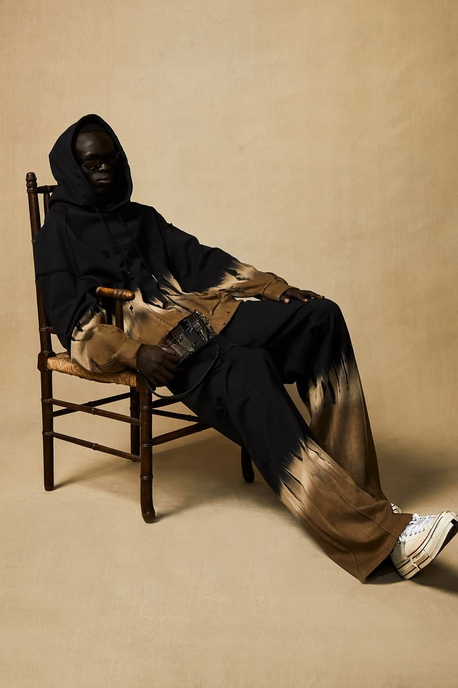如果说上述两个词更多是关于品牌的定义,那么 “真实性” 则从品牌层面更多回归到设计师本身。“在 Feng Chen Wang 的很多个系列中,你都能看到中国传统文化的影子。秀场上出现的竹编、植物染等传统工艺,与当代时装的融合再造,其实就是对我成长于东方、再接受西方时尚教育,二者碰撞结果的写照。”