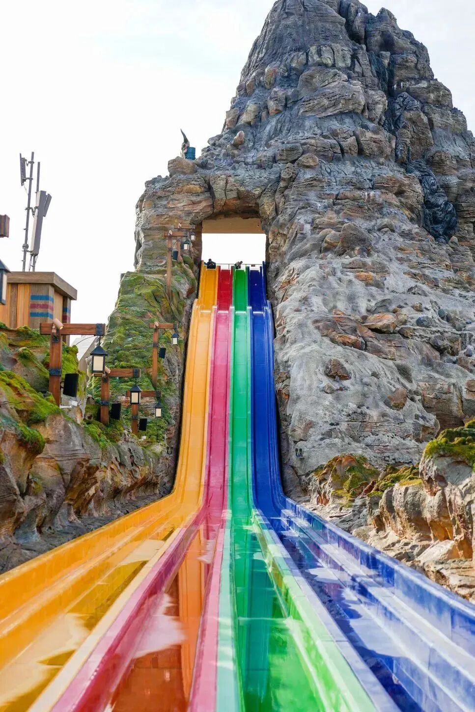 国内首创室外悬空半透明穿层的“悬空挑战”滑道、速度惊人的“登峰造极”滑道、超高速的“海洋征途”奇幻漂流、可供4人并排滑行的“彩虹竞速”滑道等,深受追求刺激挑战的游客喜爱。模拟自然河流景观的“懒人河”和“峡湾漂流”、500多平方米的超大造浪池,以及位于高空的网红无边泳池,是家庭亲子游的绝佳选择。