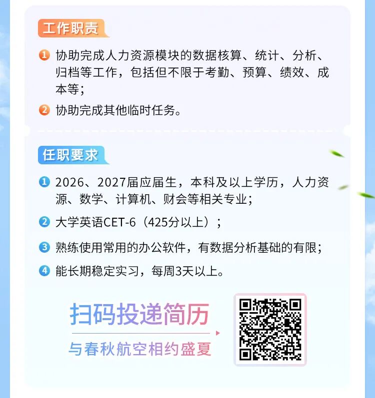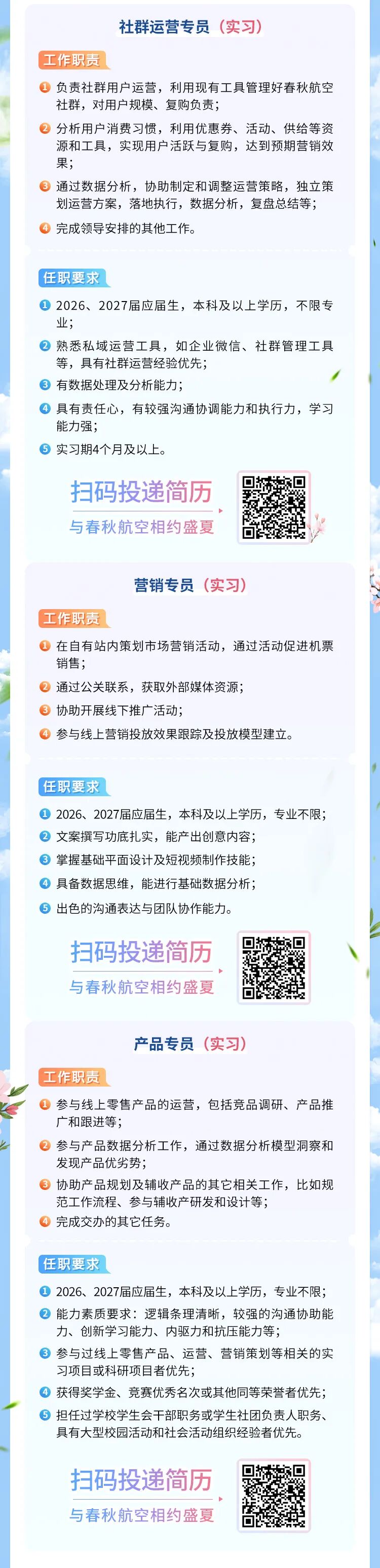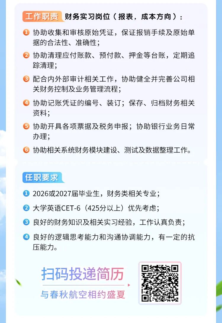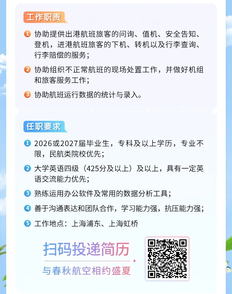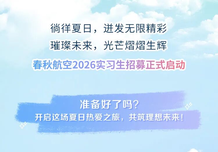 摘要:春秋航空2026届实习生招募正式启动!