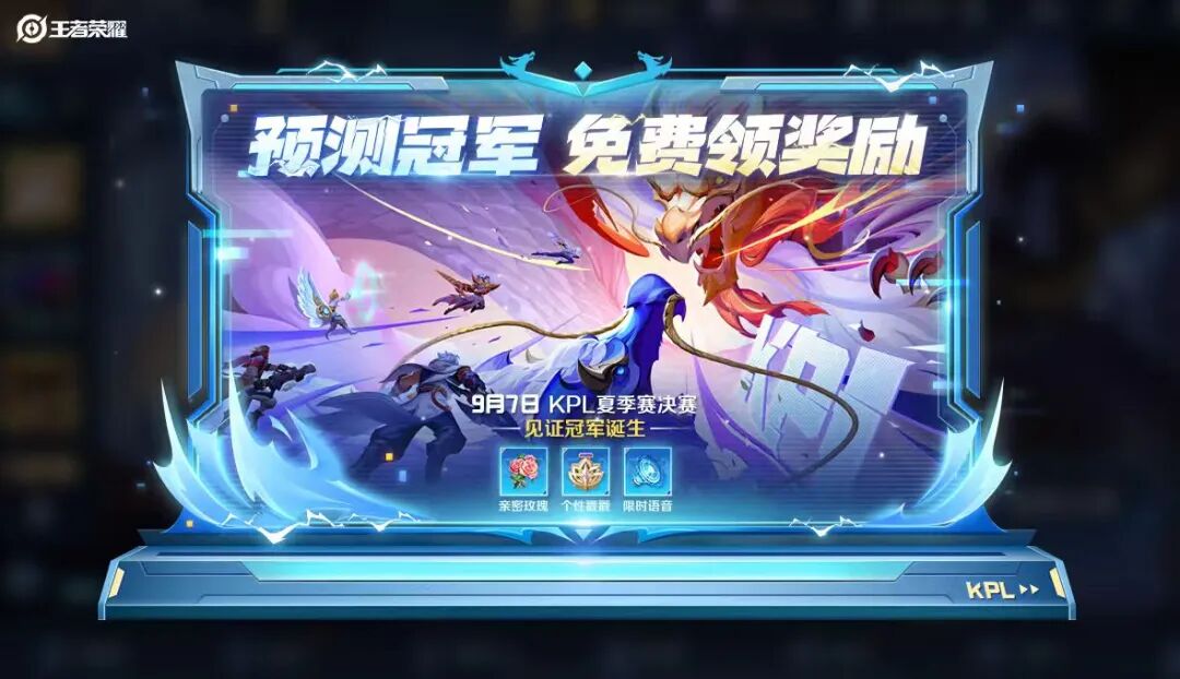 KPL夏季赛决赛将于9月7日开赛,参与应援战队、观看赛事,可获得丰富奖励!