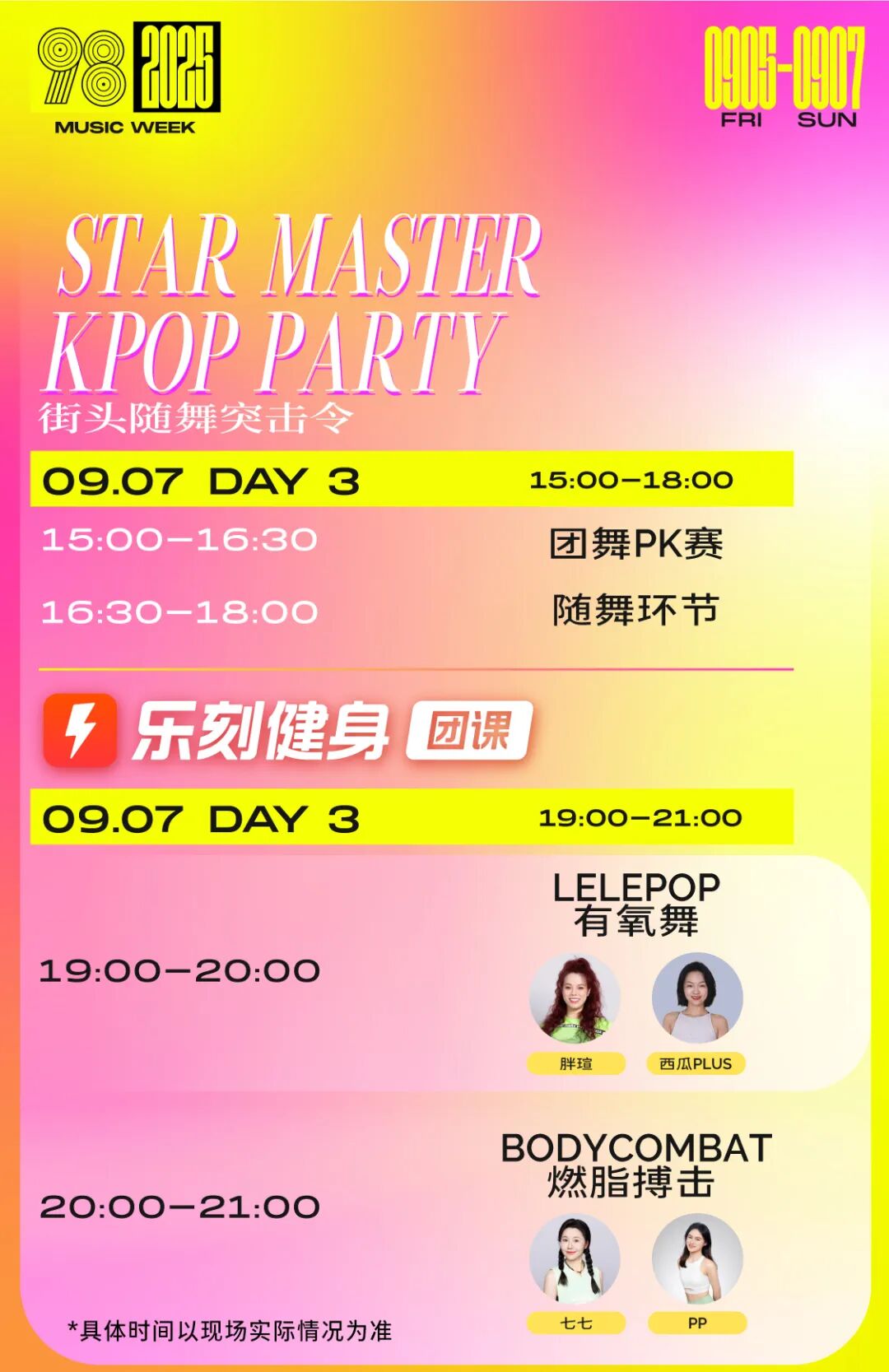 9月7日,运动的本质是释放与充能!活动首次打造运动主题板块,以“体育×音乐舞蹈” 两大运动为号角,刮起都市全民运动新风。从风靡亚洲的KPOP 随机舞蹈到开放式全民健身倡议,无论你是想“5分钟快速激活”,还是投入“60分钟持续燃脂”,这里都能让你甩掉压力、燃爆卡路里,为身心深度充电!