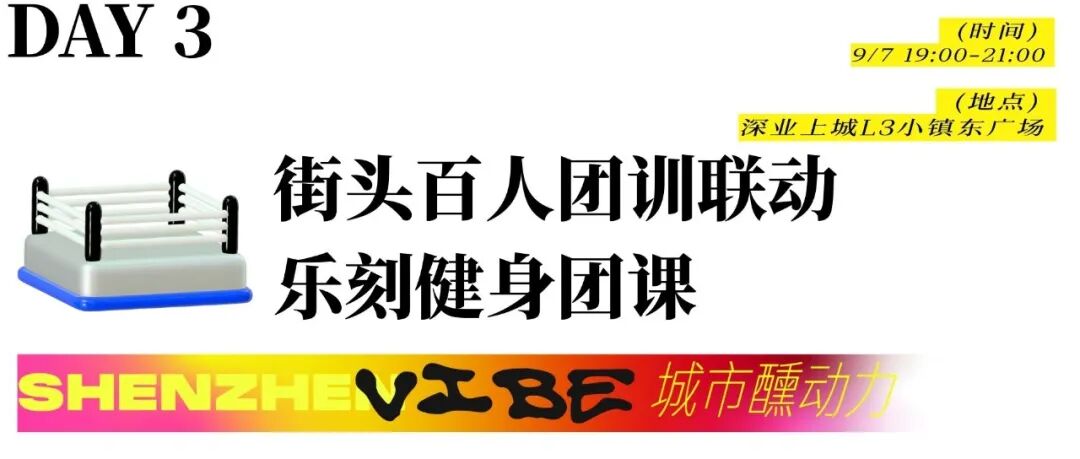 乐刻健身团课将于9月7日19:00登陆深业上城L3小镇东广场! 2小时不间断挑战:“LELEPOP有氧舞”融合KPOP、国风、街舞、爵士等多元素舞风,轻松跳出快乐与自信;“BODYCOMBAT燃脂搏击”汲取中国武术、泰拳、拳击、空手道等格斗技精髓,爆发力全开,挥洒汗水的同时释放压力!本次课程打破传统健身模式,为年轻人带来全新的运动体验与生活方式。