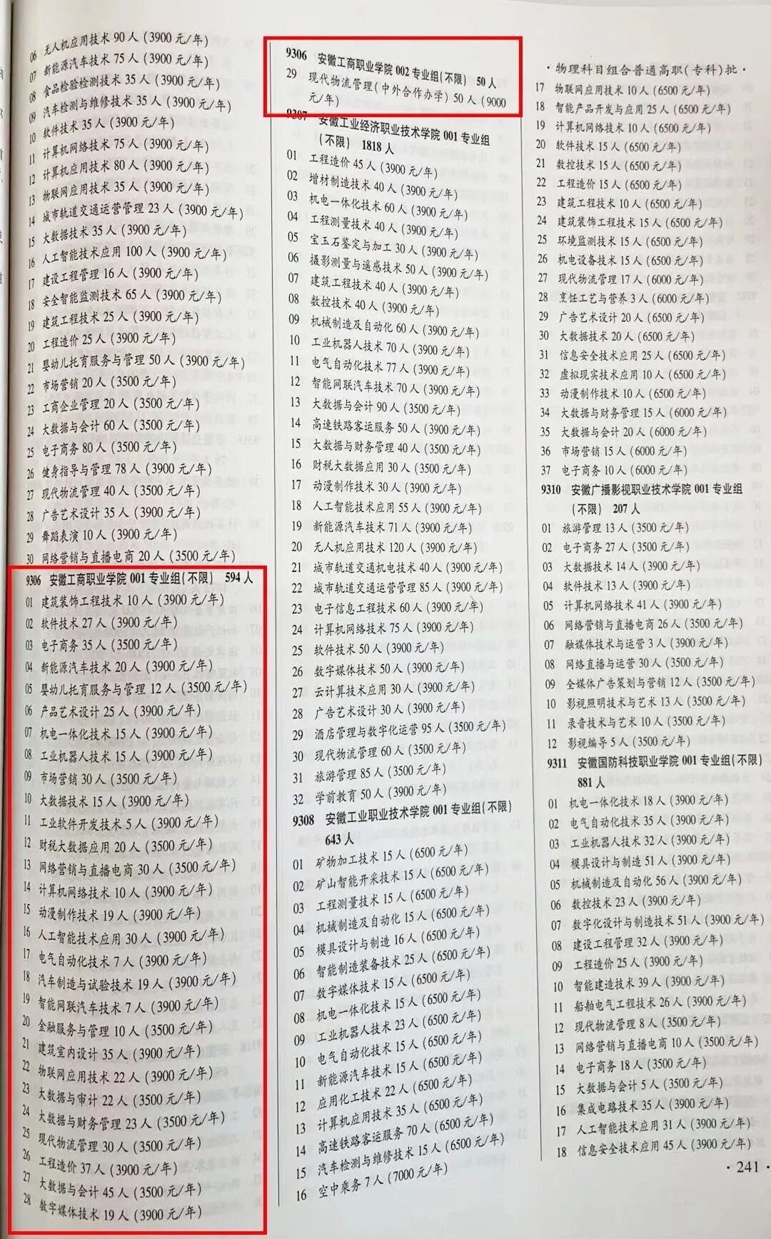 📘 物理科目组合普通高职(专科)批招生计划在《2025安徽普通高校招生报考指导·物理科目组合》上的第241页