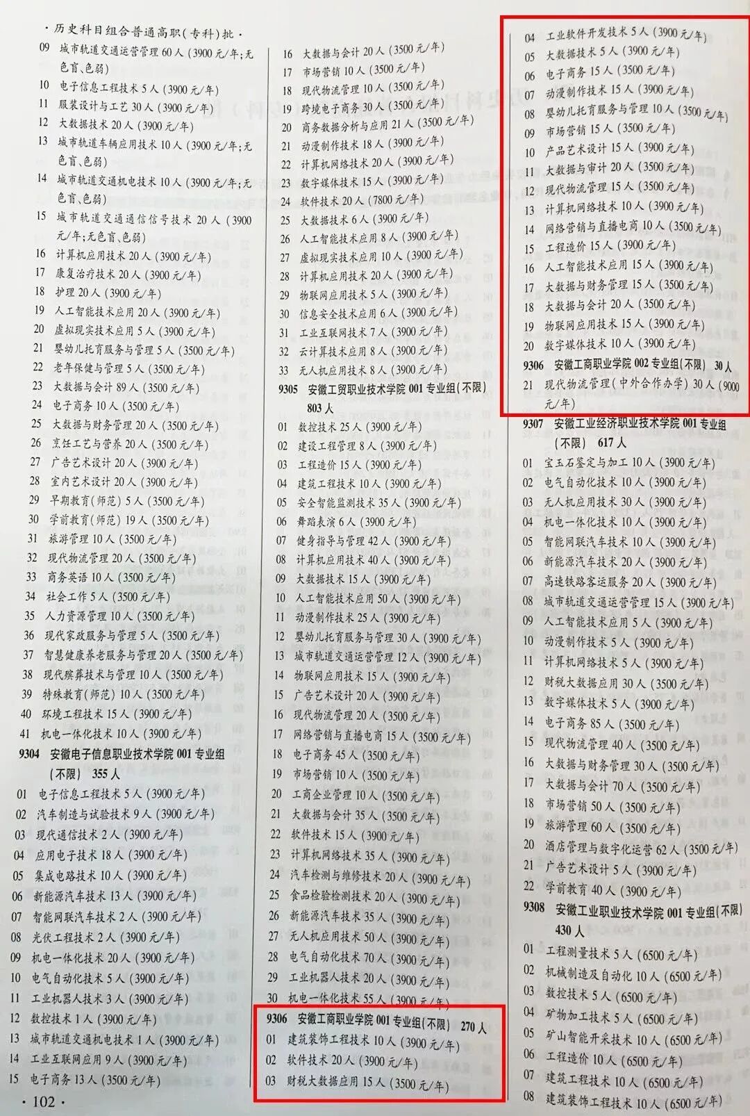 📙 历史科目组合普通高职(专科)批招生计划在《2025安徽普通高校招生报考指导·历史科目组合》上的第102页