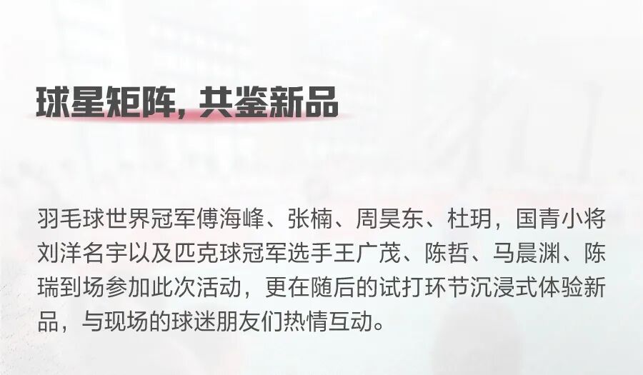文章内容来源于公众号:李宁羽毛球网球匹克球,点此可查看原文,内容版权归相关企业所有,本网站仅供交流学习。若涉及版权问题或存在侵权情况,请及时与我们联系,我们将第一时间进行删除处理。