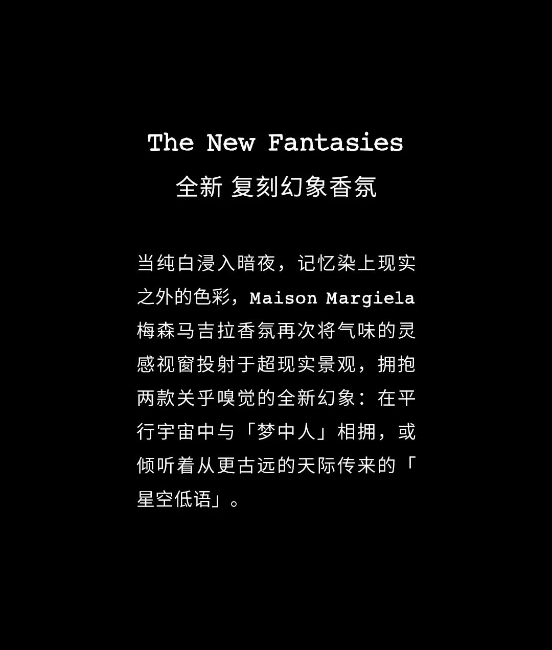 文章内容来源于公众号:MaisonMargiela马吉拉香氛,点此可查看原文,内容版权归相关企业所有,本网站仅供交流学习。若涉及版权问题或存在侵权情况,请及时与我们联系,我们将第一时间进行删除处理。