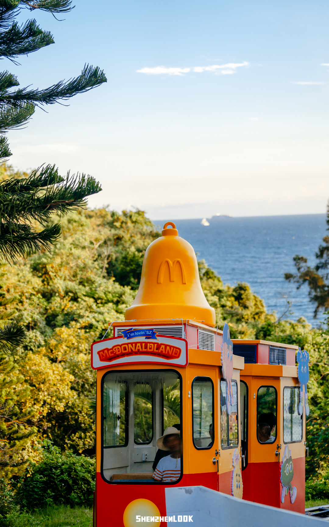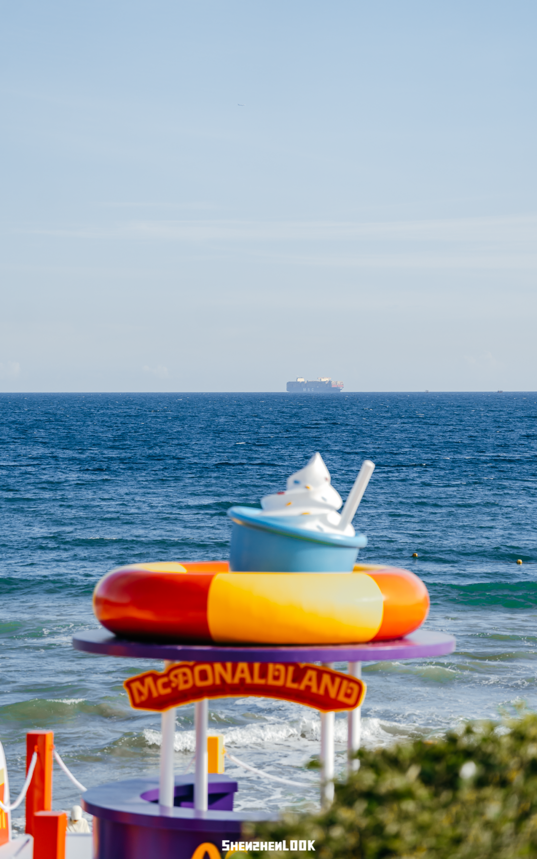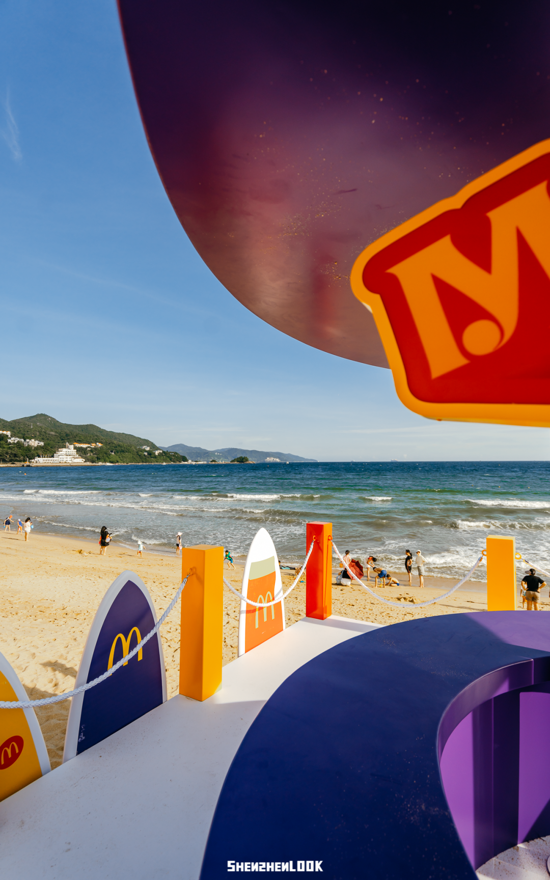 巡游第一站来到位于深圳大鹏的云海天使湾。麦当劳在这里打造了麦当劳小火车、海边麦当劳全家福长椅、麦麦海上秋千、快艇等游玩项目,像是一座开在海上的“麦当劳游乐园”~