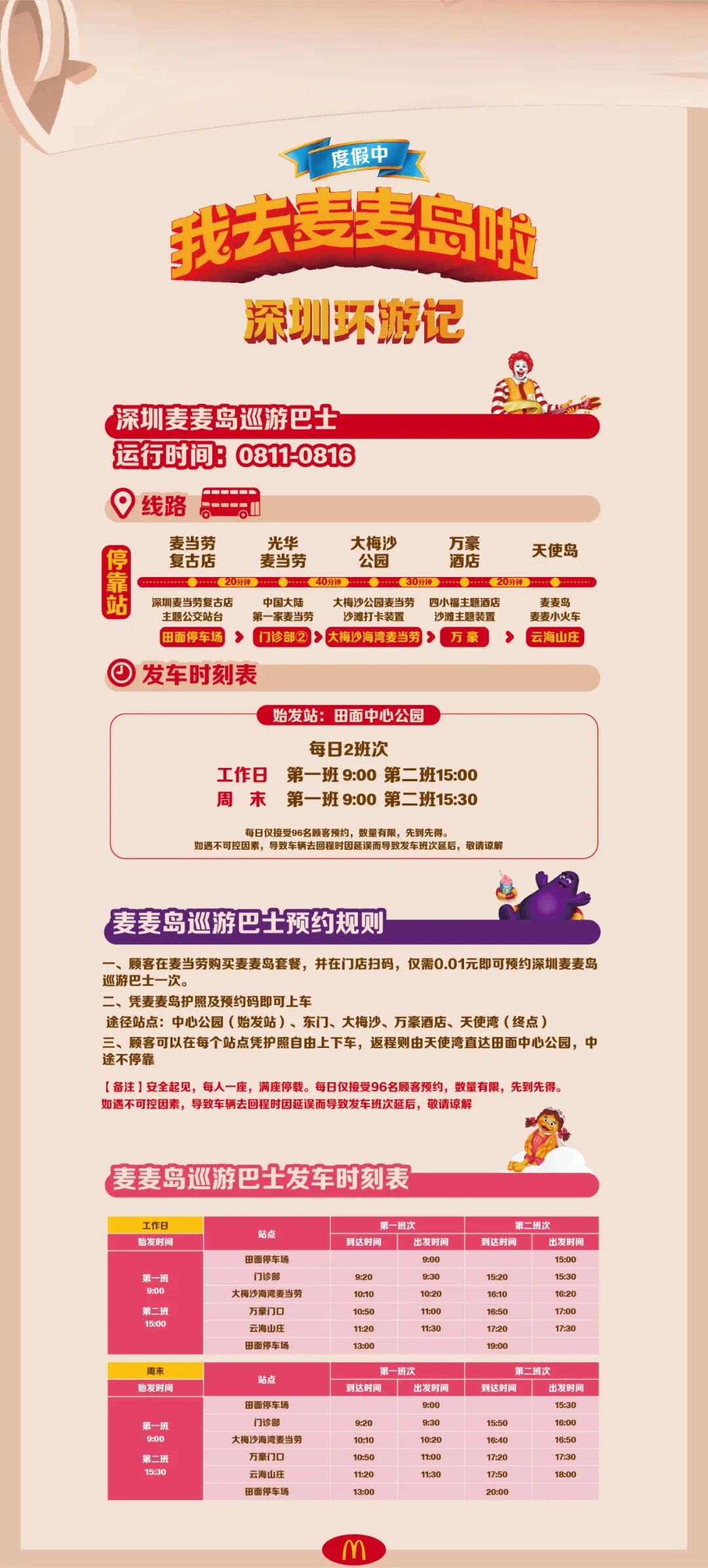 Tips:想乘坐麦麦巴士的顾客,建议前往深圳首家麦当劳“麦麦岛”旗舰店(田面店)购买,店门口就是发车点哦~