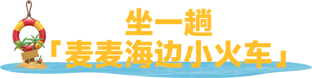 来到云海天使湾当然要坐一趟「麦麦海边小火车」,头顶铃铛、标志性红黄配色车厢,从海边缓缓行驶着,窗外就是蔚蓝海景,坐在车厢里看海真的很治愈~