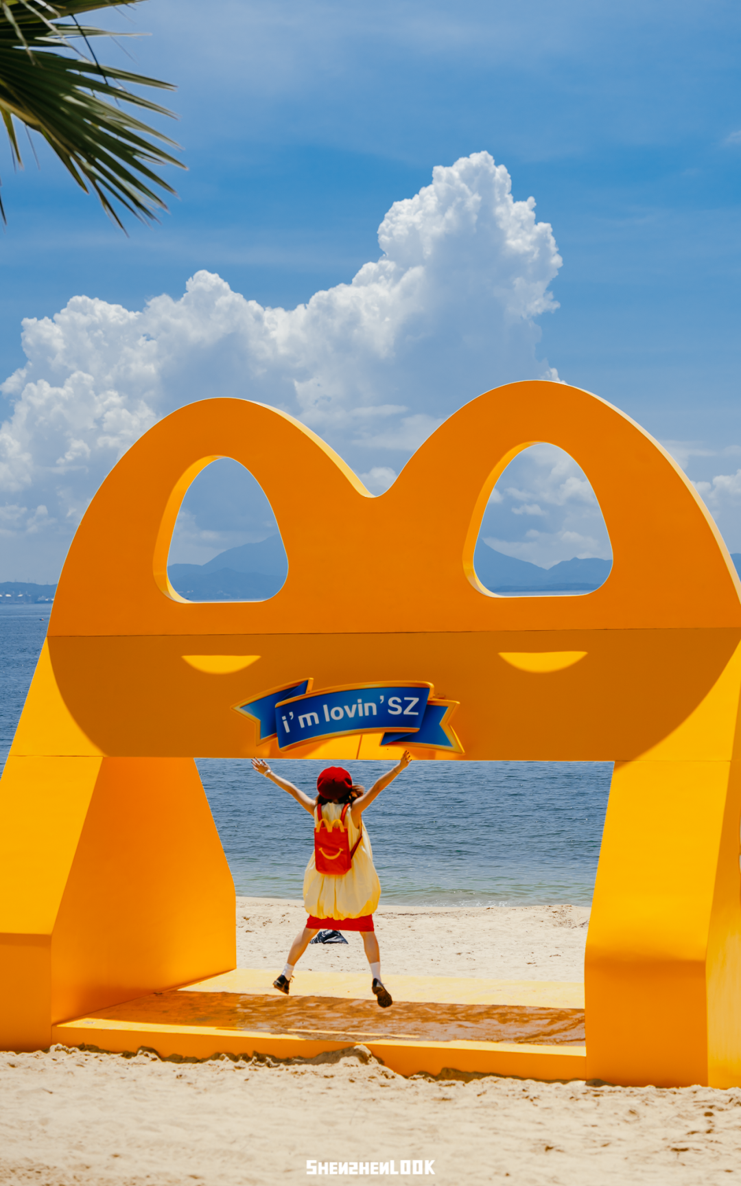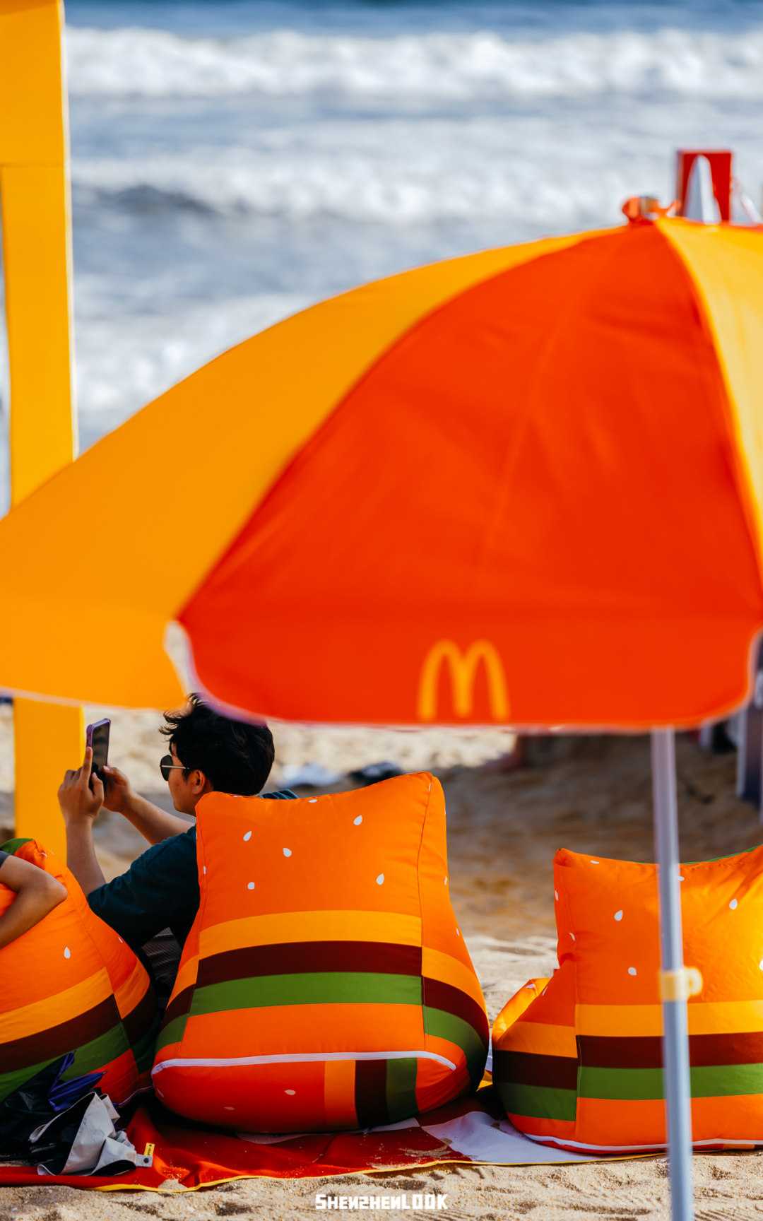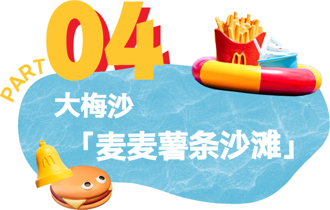 第三站奔向大梅沙海滨公园,沙滩上设计了汉堡沙滩椅、开心乐园盒打卡区、薯条长椅...整一个就是「麦麦薯条沙滩」,在阳光海边前显得更加可爱耀眼~