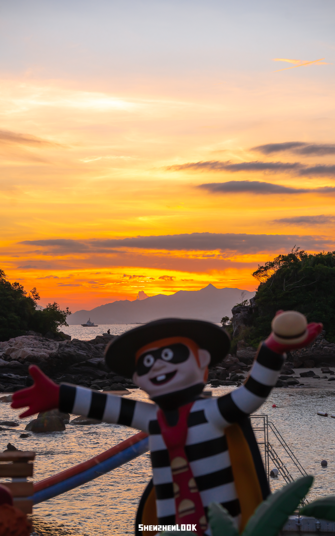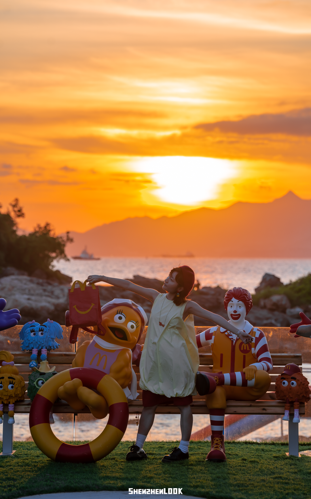 建议各位麦粉下午近傍晚来云海天使湾,气温不会过高,还能在海边的「麦当劳全家福长椅」上和麦当劳好朋友们等一场浪漫的海上日落~