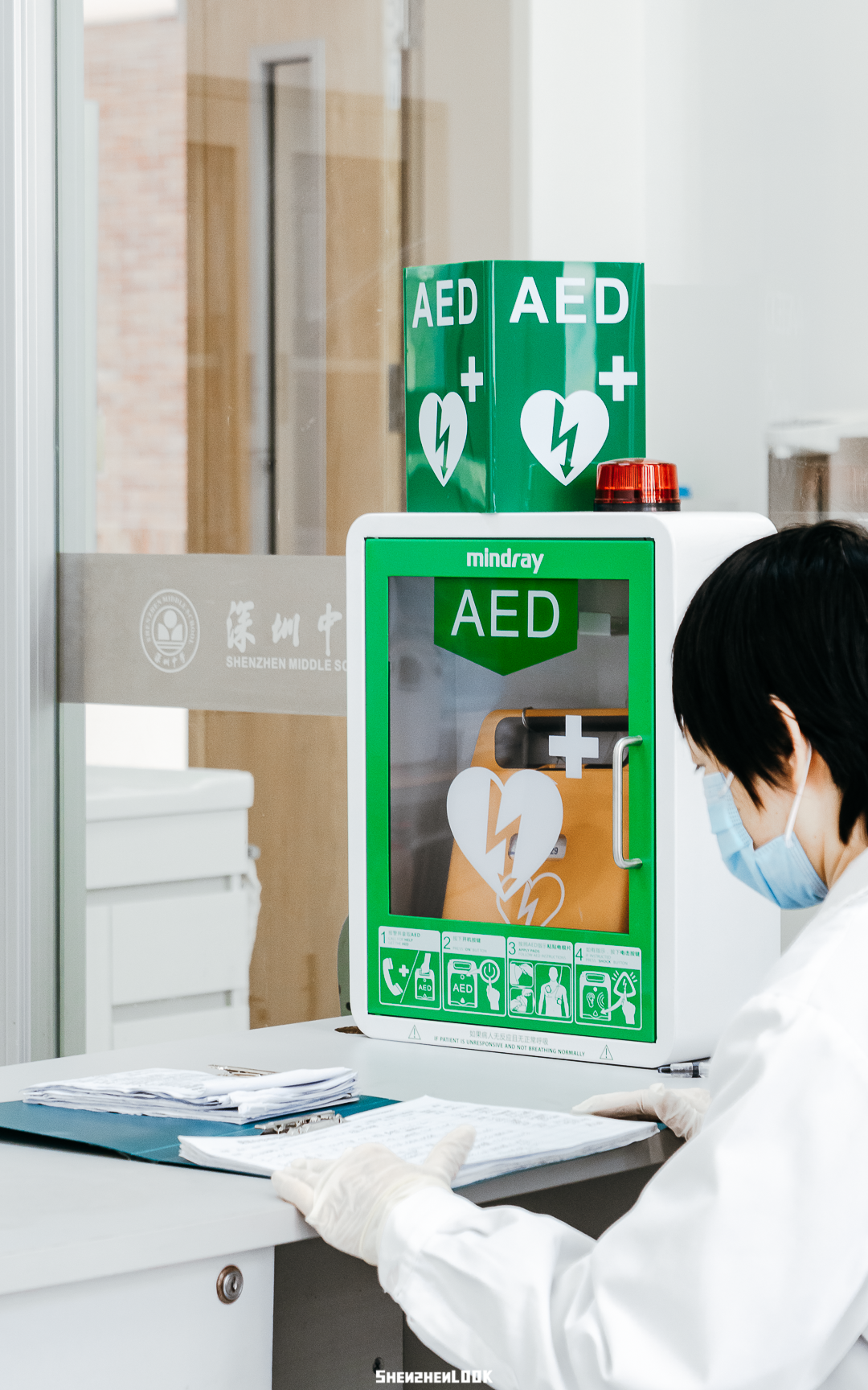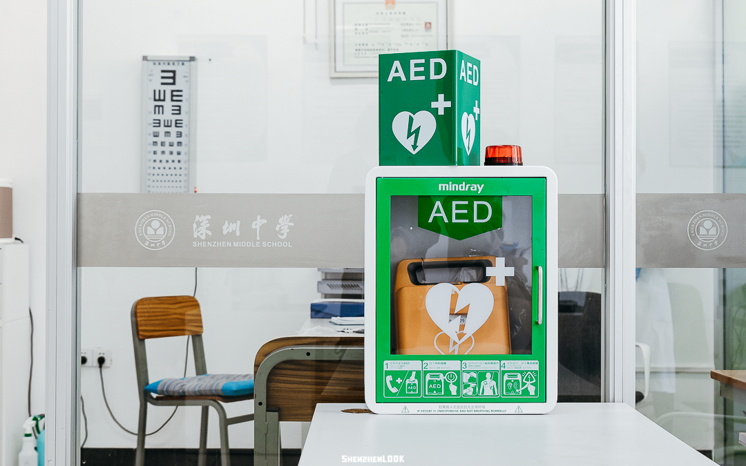 深大、南科大、北大深研院、清华深研院等多所高校,以及深中、深外、宝中等多所高中,均已陆续配置AED,基本放置在医务室、食堂等场所。