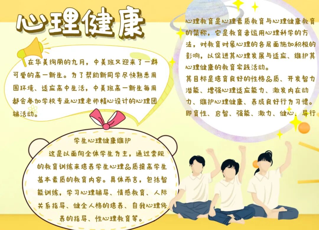 在华美绚丽的九月,中美班又迎来了一群可爱的高一新生。为了帮助新同学尽快熟悉周围环境、适应高中生活,中美班高一新生每周都会参加学校专业心理老师精心设计的心理团辅活动。