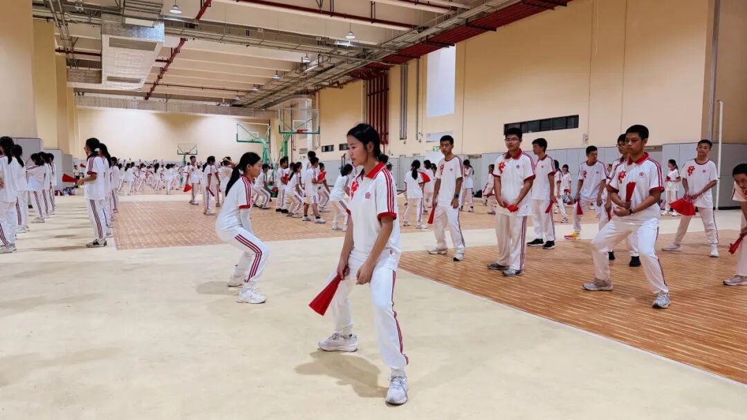 各班选拔的太极扇小老师是训练中的亮点。他们提前接受训练,再回到班级耐心指导同伴。有的一边示范动作要领,一边挨个纠正错误;有的用幽默的语言化解大家的紧张,让未能迅速学会动作的同学放松关节;有的不厌其烦地重复着同一个动作,力图让所有同学都能做得标准而美观。在他们的身上,专注、负责、奉献的师者火种已悄然埋下,等待在未来的日子里传递更多的温度。