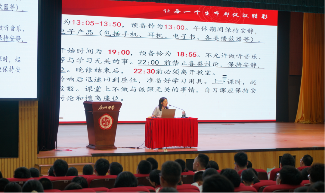 正如太极扇只有先“约束身形”才能“挥洒自如”,学生的成长也离不开自律品格的培养。学生发展中心副主任唐娜和赵少华分别为新生们讲解了我校德育常规管理的内务纪律和校规条例,强调同学们应当在规则中学会担当,在纪律里懂得敬畏。良好的行为习惯不仅有助于创造舒适的学习环境和生活环境,更能让人获得受益终生的优秀品质。