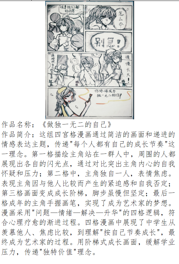 无论是心理漫画还是心理摄影,都是学生们心灵的艺术表达。它们为同学们提供了一个抒发情感、释放压力的平台,让大家在创作与欣赏中,更好地了解自己和他人的内心世界。