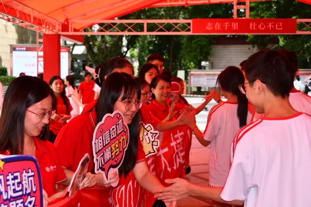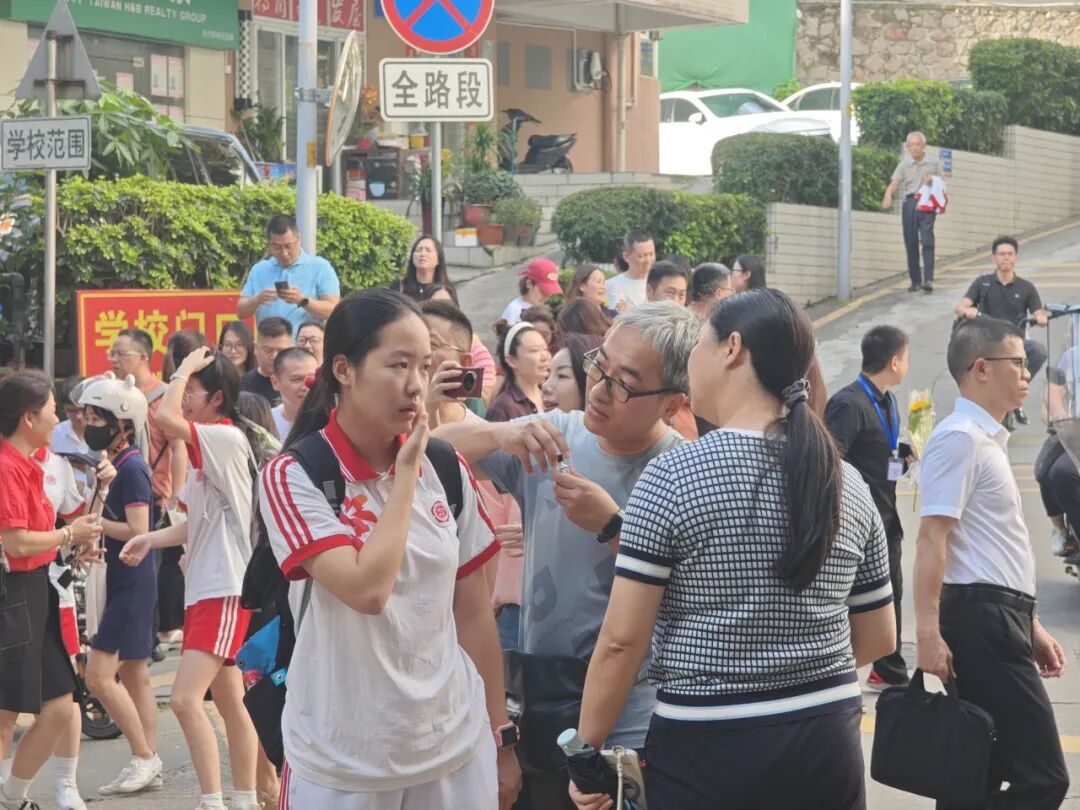 还有这样一群助梦者,他们默默筑起温暖的防线。交警挥汗疏导,安保严阵以待,街道办暖心守候,教师殷切叮咛,食堂烟火氤氲,学弟学妹留言祝福。每一个岗位都在诉说:别担心,只管向前冲。这是最朴实的守护,也是最深情的祝福:愿广中的学子,提笔时都有星光指路,落笔处尽是锦绣前程。你们追逐梦想的身后,永远有我们张开双臂的守候。