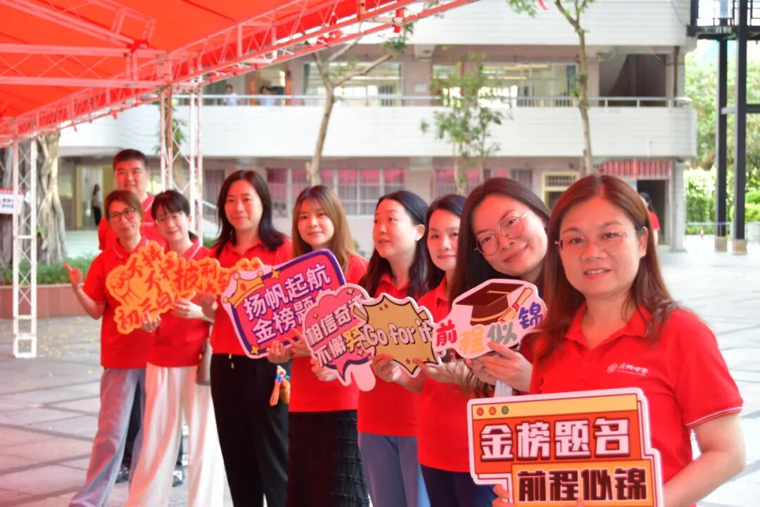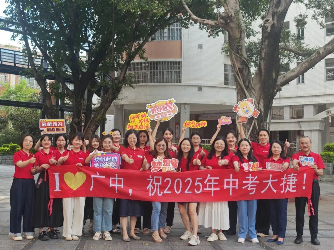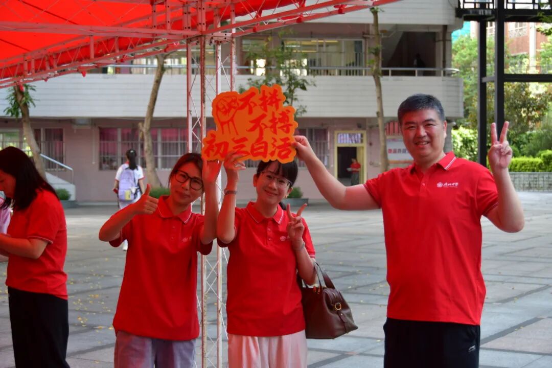 2025年6月30日,骄阳似火,为梦想加冕!广州中考盛大启幕,广州中学的学子们披一身灿烂晨光,执笔为剑,志在巅峰。青春的热血与六月的艳阳交相辉映,为他们铺就一条通往考场的荣耀之路。为助2025届学子在这场人生大考中绽放光芒,广州中学集结最强应援阵容——校级领导亲临鼓劲,初三全体教师全程守护,家长后援团暖心相伴。他们身披“金榜题名”的红色战袍,如朝阳般炽热耀眼,用最嘹亮的加油声为学子们注入力量。这场精心筹备的送考仪式,是祝福的接力,更是希望的绽放!
